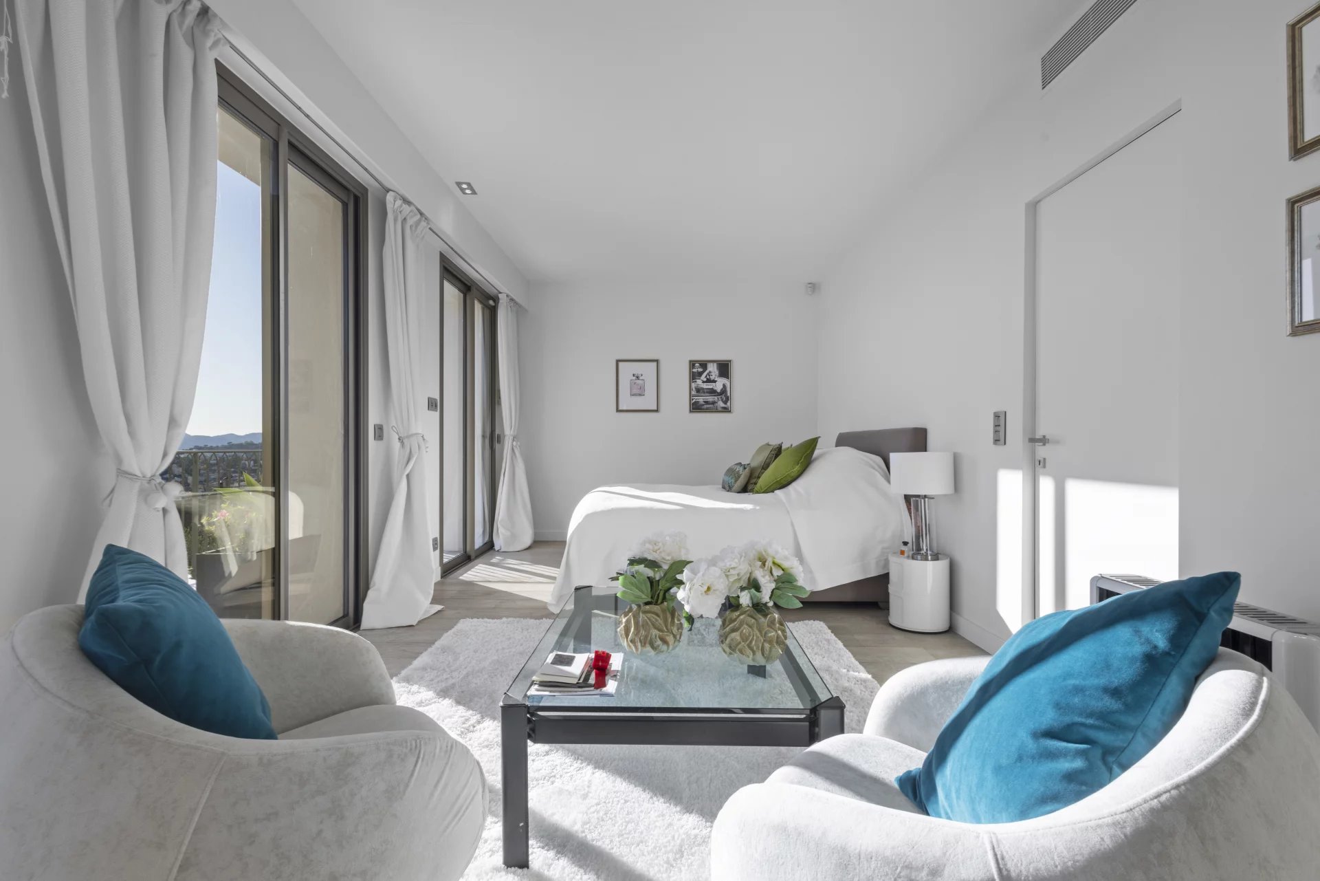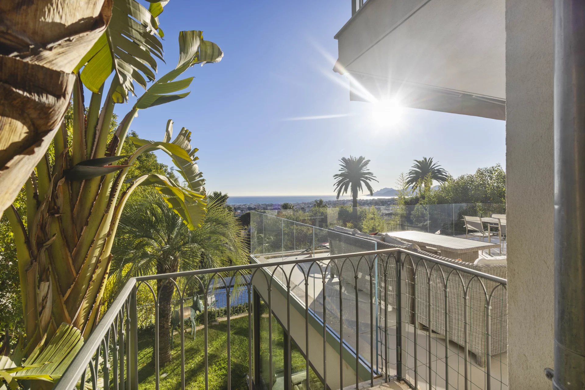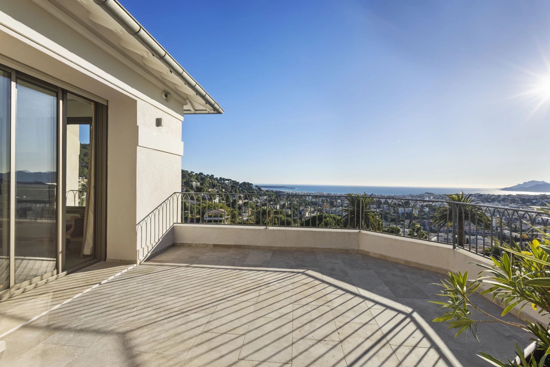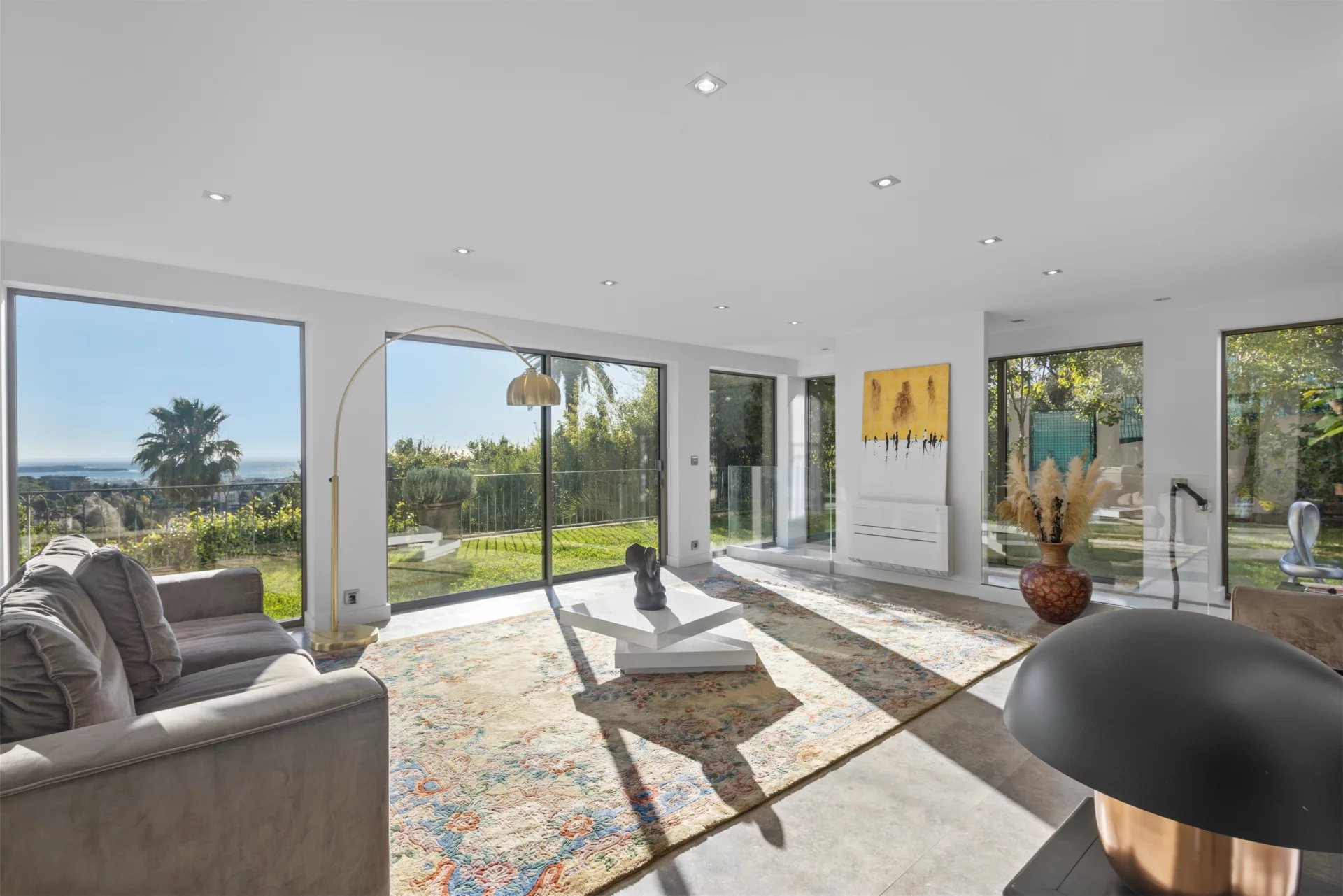 Nestled within the serene hills of Le Cannet, this elegant contemporary villa presents an architectural masterpiece that maximizes its privileged position overlooking the Mediterranean. Rising across multiple levels, the residence combines sleek modern design with traditional Provençal elements to create a living environment of unparalleled sophistication. The property's main level houses a refined dining area, professional-grade kitchen, and dedicated office space, all oriented to capture the opened coastal vistas. The upper level accommodates 2 luxurious bedroom suites, each with private bathroom facilities designed with premium materials. Crowning the residence, the penthouse master suite represents the pinnacle of luxury with its sumptuous bathroom, generous dressing area, and wraparound terrace commanding spectacular panoramas of the bay. 2 additional en-suite bedrooms occupy the garden level alongside a comfortable secondary living area. For guests or staff, a fully independent apartment provides complete privacy with its own living room, kitchen, bedroom, and bathroom. Meticulously landscaped grounds spanning 925 m² feature a stunning swimming pool positioned to maximize both sun exposure and views. A spacious garage completes this exceptional property, which offers both proximity to Le Cannet village and the perfect balance of privacy and contemporary luxury on the Côte d'Azur.
