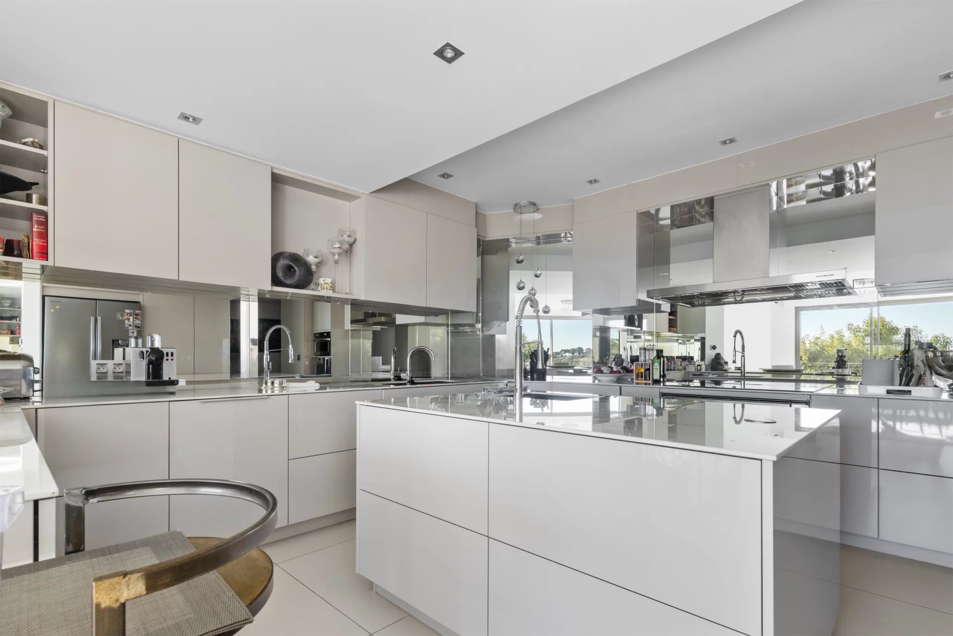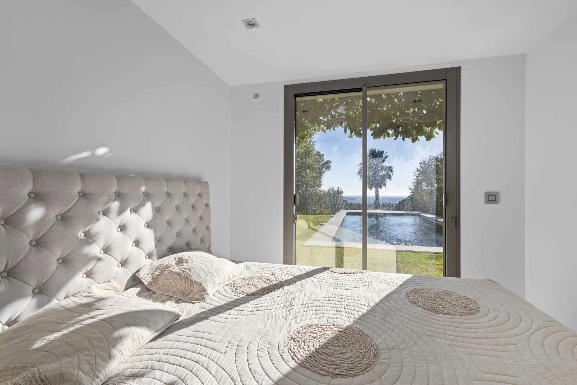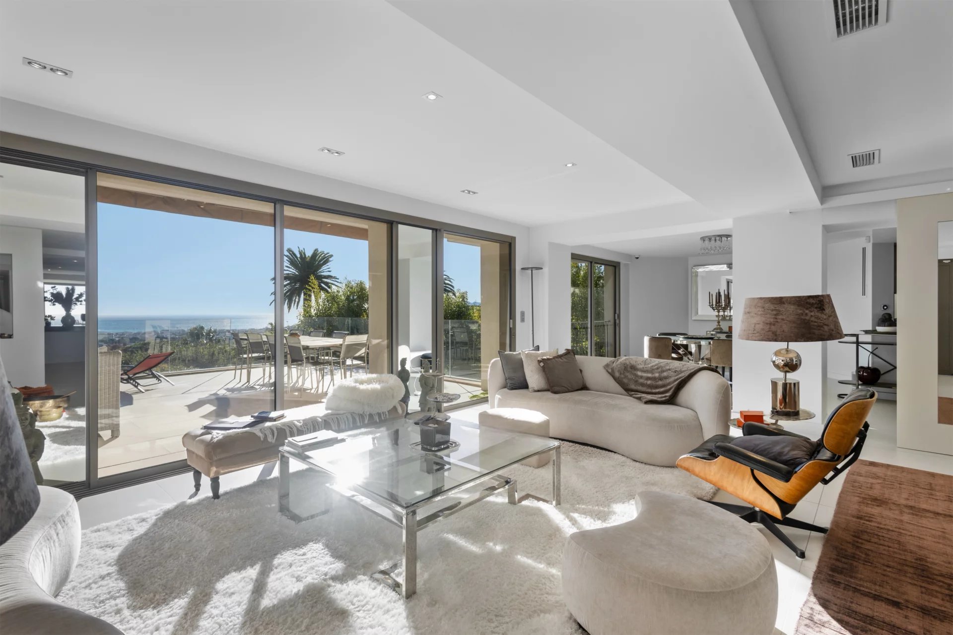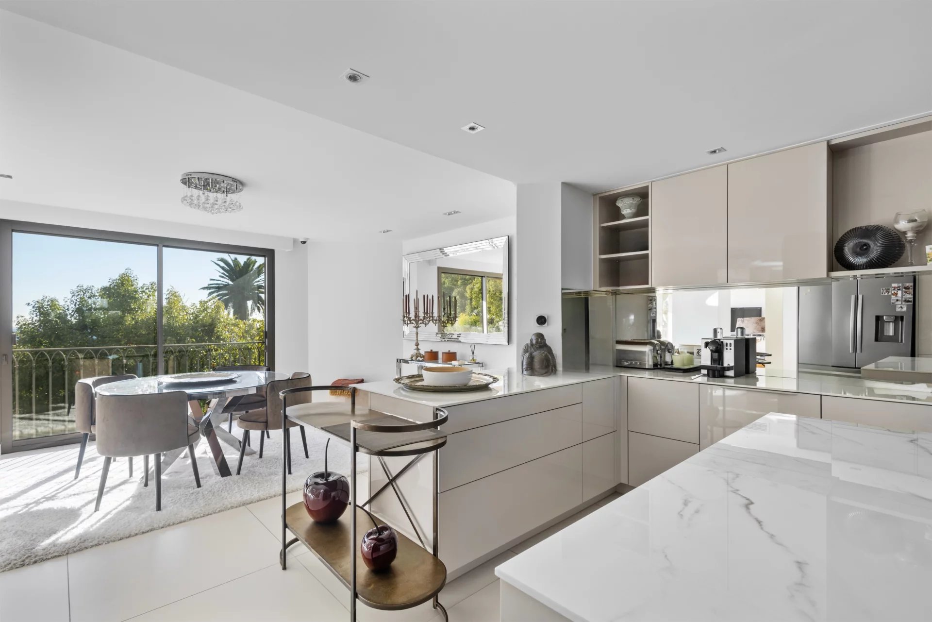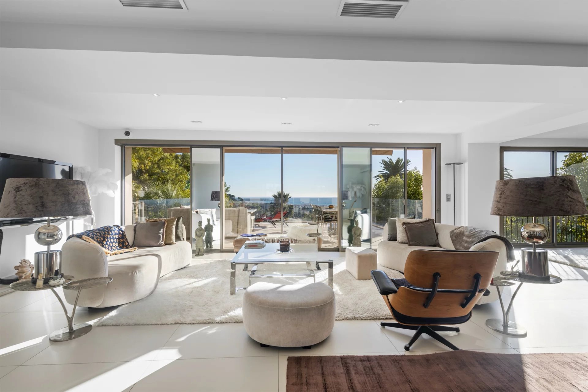Nestled within the serene hills of Le Cannet, this elegant contemporary villa presents an architectural masterpiece that maximizes its privileged position overlooking the Mediterranean. Rising across multiple levels, the residence combines sleek modern design with traditional Provençal elements to create a living environment of unparalleled sophistication. The property's main level houses a refined dining area, professional-grade kitchen, and dedicated office space, all oriented to capture the opened coastal vistas. The upper level accommodates 2 luxurious bedroom suites, each with private bathroom facilities designed with premium materials. Crowning the residence, the penthouse master suite represents the pinnacle of luxury with its sumptuous bathroom, generous dressing area, and wraparound terrace commanding spectacular panoramas of the bay. 2 additional en-suite bedrooms occupy the garden level alongside a comfortable secondary living area. For guests or staff, a fully independent apartment provides complete privacy with its own living room, kitchen, bedroom, and bathroom. Meticulously landscaped grounds spanning 925 m² feature a stunning swimming pool positioned to maximize both sun exposure and views. A spacious garage completes this exceptional property, which offers both proximity to Le Cannet village and the perfect balance of privacy and contemporary luxury on the Côte d'Azur.