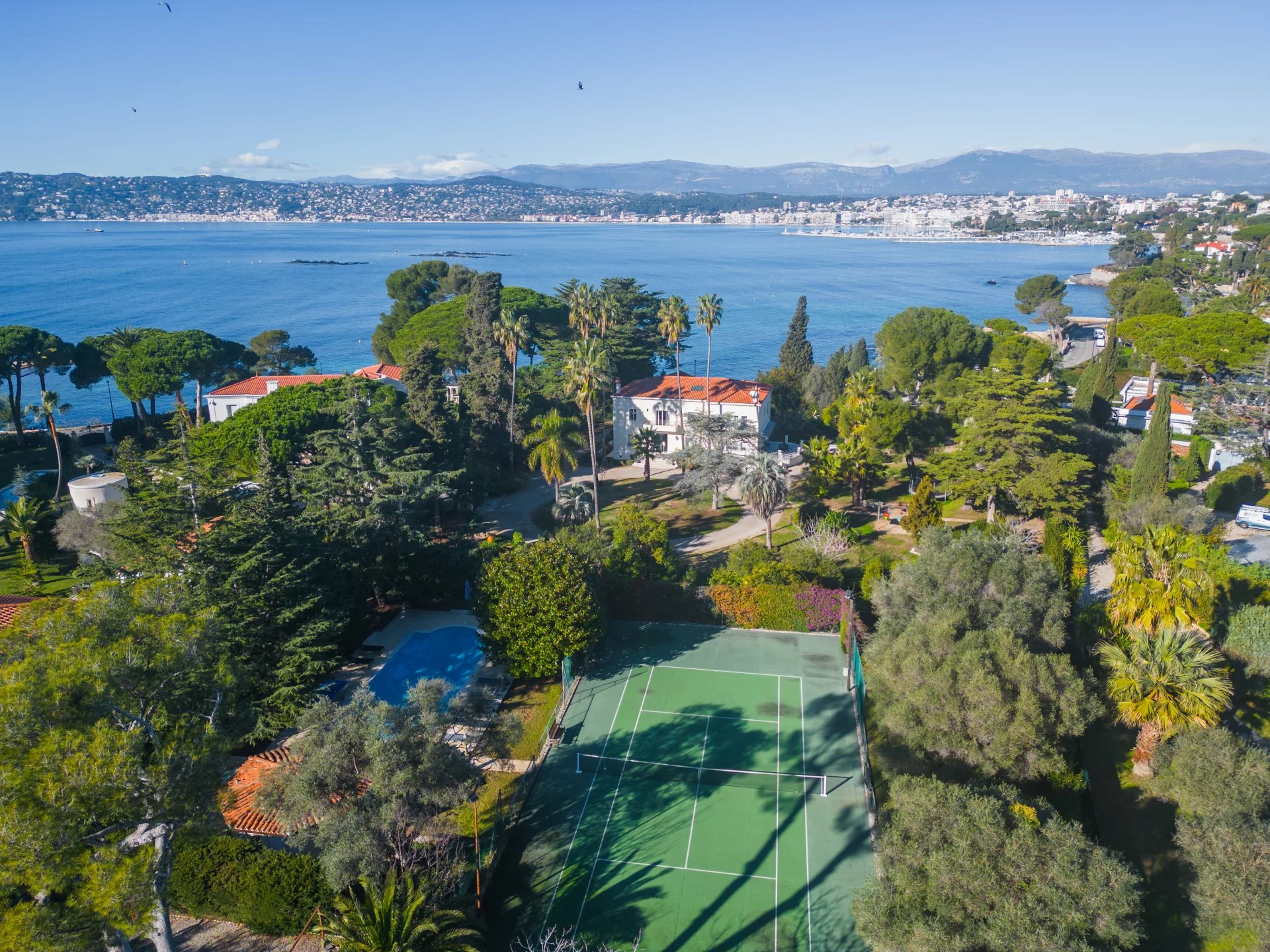 Majestically positioned in first line to the sea on Cap d'Antibes' western shore, this Belle Époque residence commands sweeping views across the Mediterranean, the Bay of Cannes and the Estérel mountains. Set within approximately 9,000 square metres of landscaped grounds — an absolute rarity on this legendary peninsula. The villa comprises ten bedrooms, including two master suites with private sea-facing terraces, two reception rooms and a dining room. The grounds offer Mediterranean gardens, a heated pool with pool house and a tennis court. An architectural project has been submitted for planning permission, opening the way for a prestigious renovation honoring the villa's heritage while meeting the highest contemporary standards.