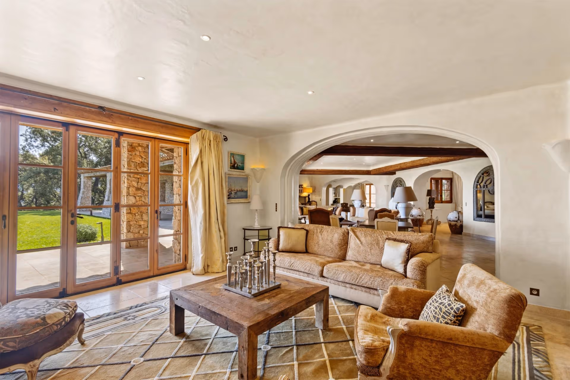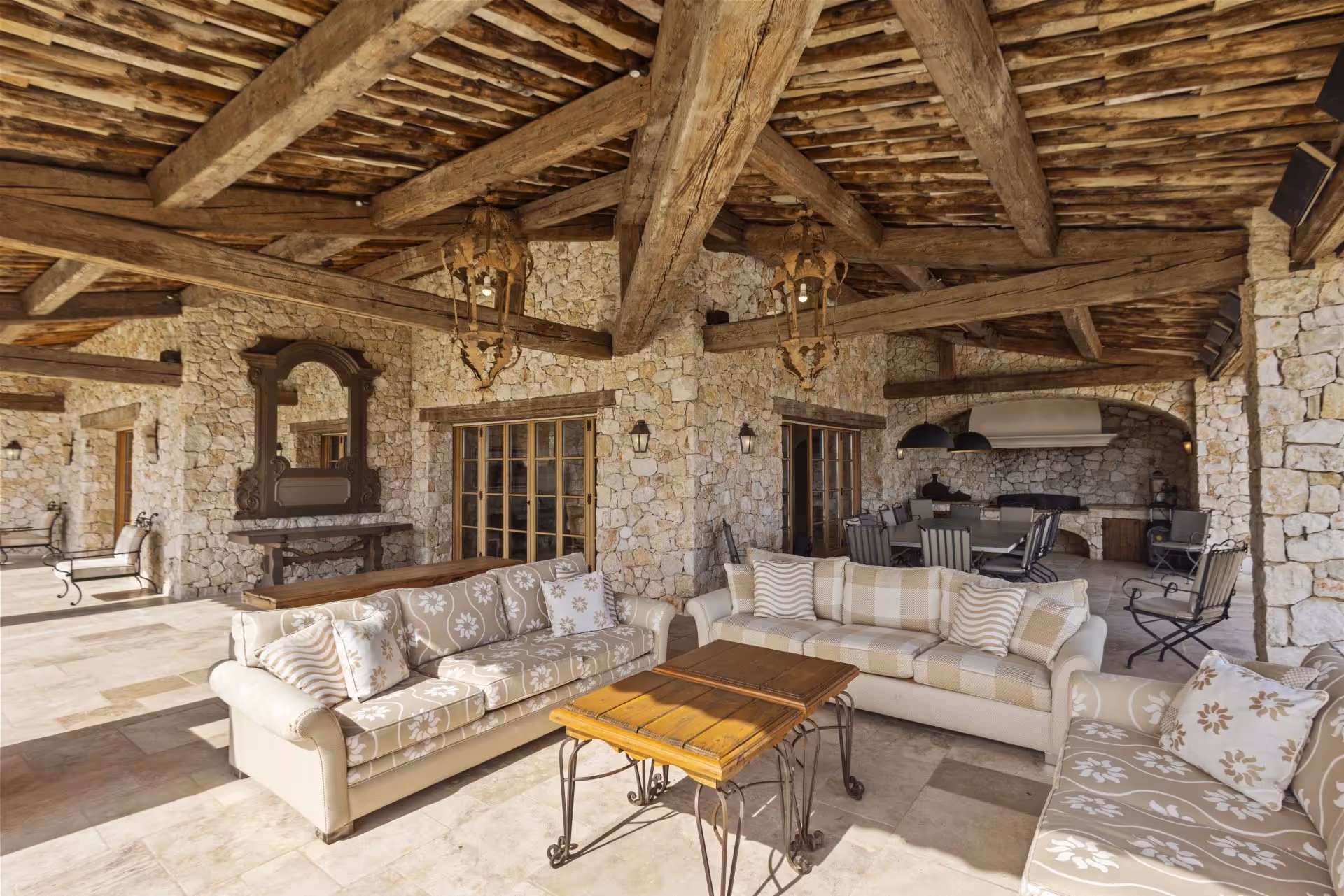 Set high above the Côte d’Azur, this rare 30-hectare estate—just 20 minutes from Cannes—enjoys exceptional panoramic views from the Mediterranean Sea to the Estérel mountains, in a preserved natural setting with complete privacy. The main stone residence, inspired by Provençal architecture, blends authenticity with modern comfort, featuring exposed beams, natural stone and generous covered terraces oriented towards the views. The estate offers outstanding amenities: three heated swimming pools including an infinity pool, a professional tennis court, dedicated spa facilities, and a private helipad. Additional accommodations include three independent guest villas, a traditional farmhouse, a manager’s residence and five staff apartments—ideal for hosting while ensuring discreet, seamless service.