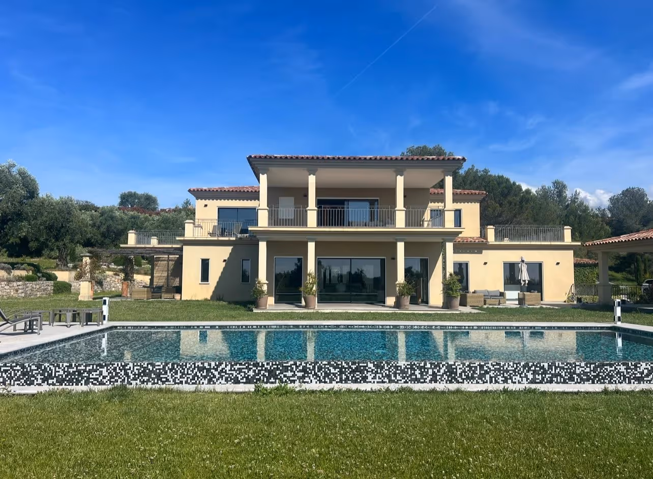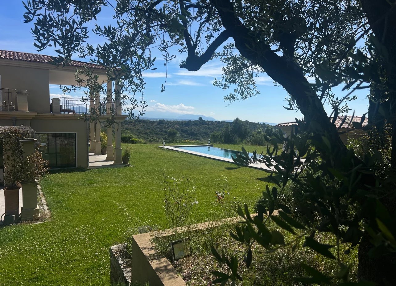 Set in an elevated, commanding position, this neo-Provençal villa offers absolute peace and privacy on 1.6 hectares of landscaped grounds planted with centuries-old olive trees. Built in 2018, it offers approximately 570 sq m of living space. The home features an open-plan kitchen with a separate pantry/prep kitchen, a TV lounge, and four en-suite bedrooms, each opening onto private terraces. On the garden level, an independent one-bedroom apartment with its own kitchen is ideal for guests or staff. An additional space can be fitted out as a home cinema or a private gym. Outside: a heated infinity pool, a pool house with summer kitchen, a pétanque court, and a four-car garage.