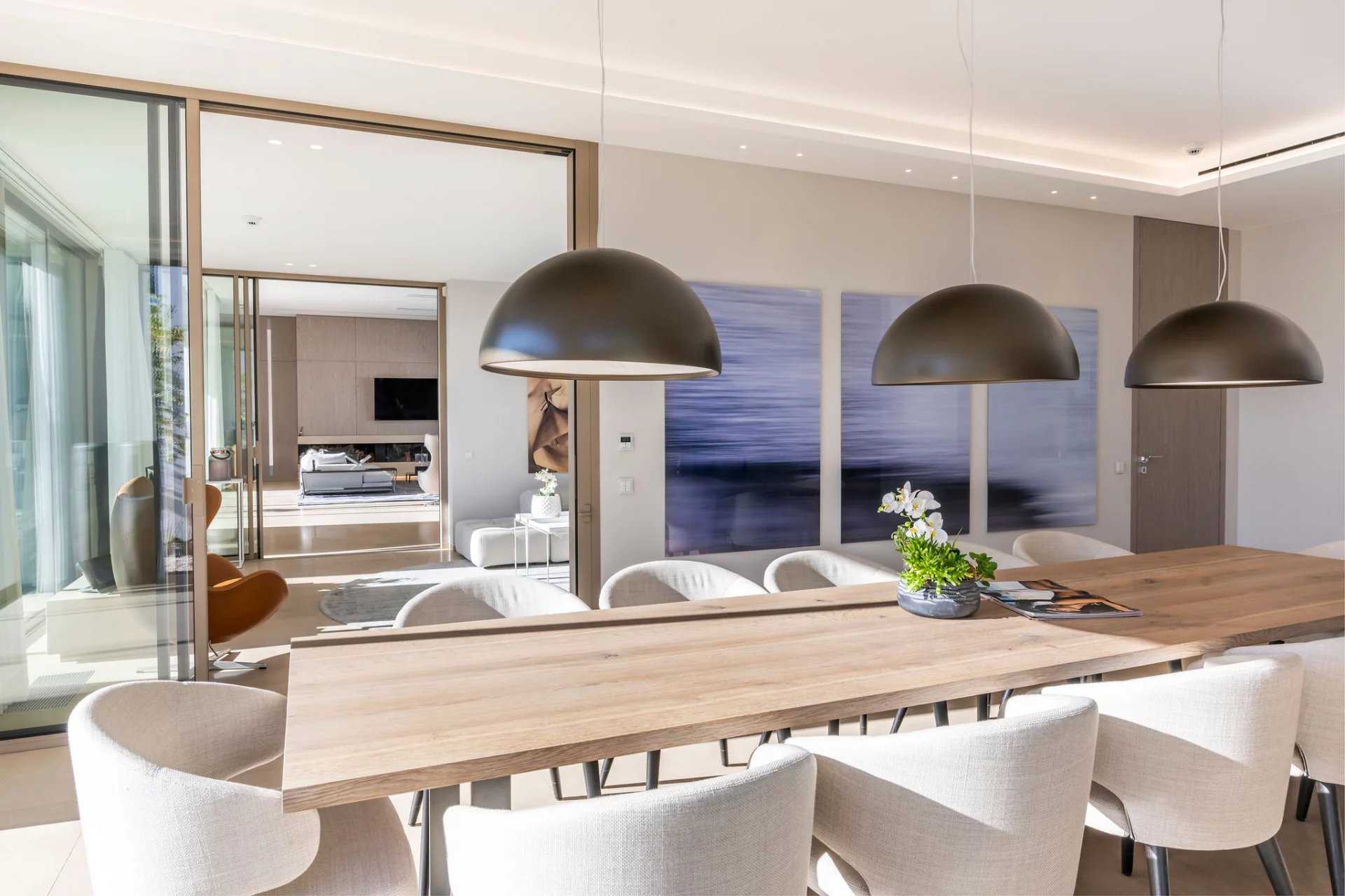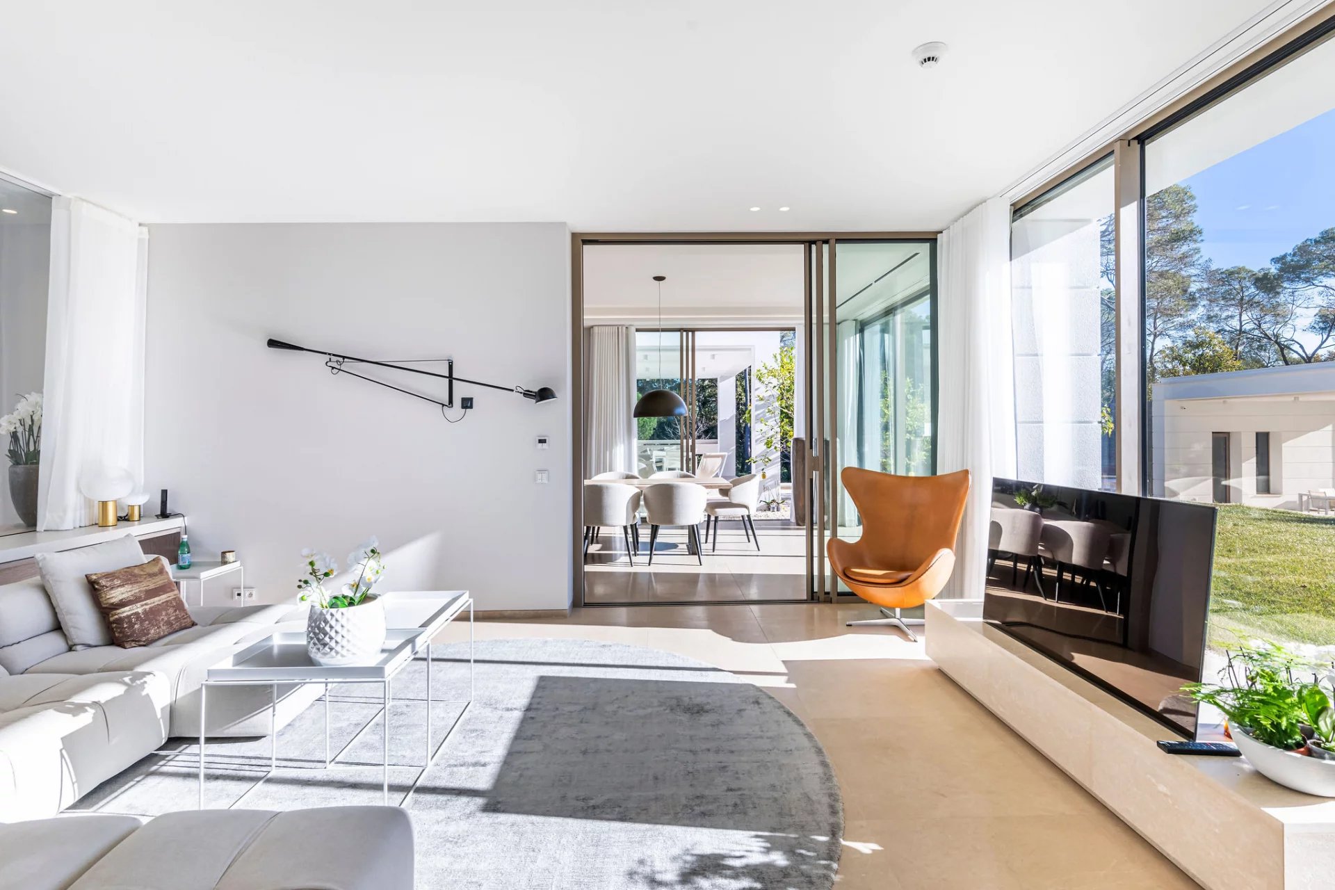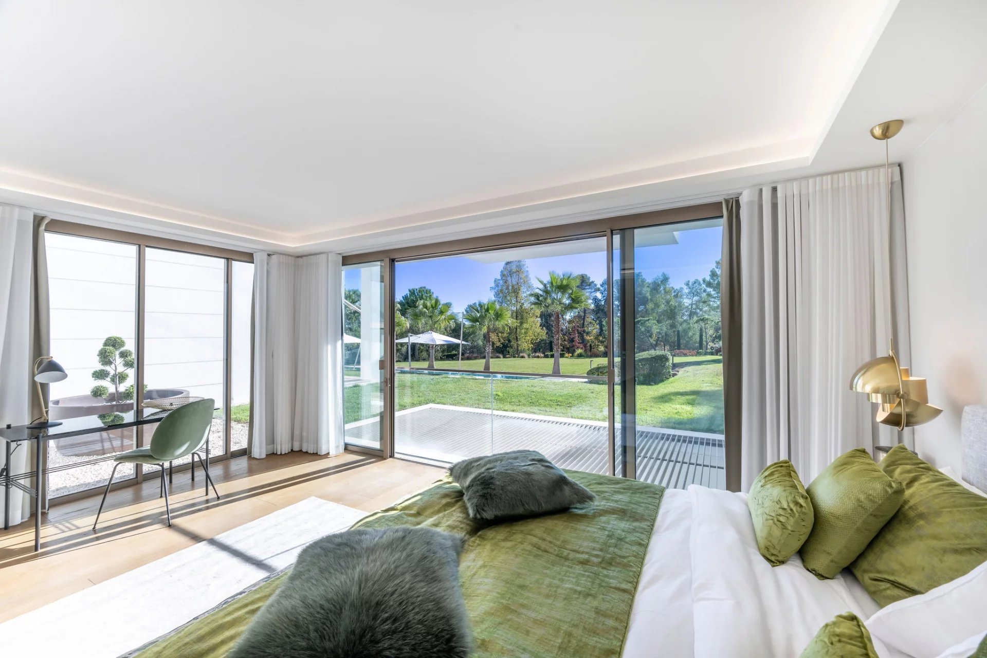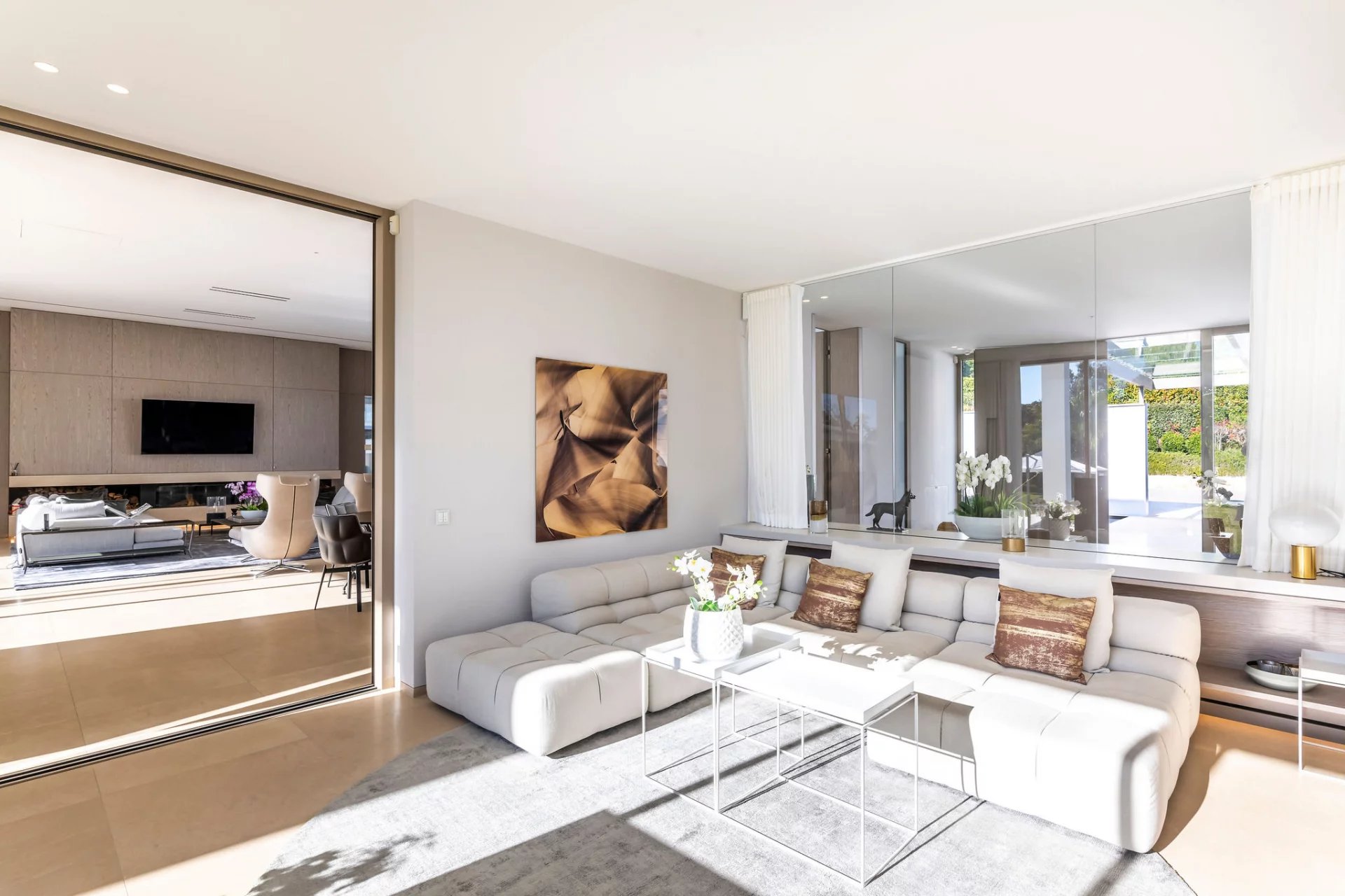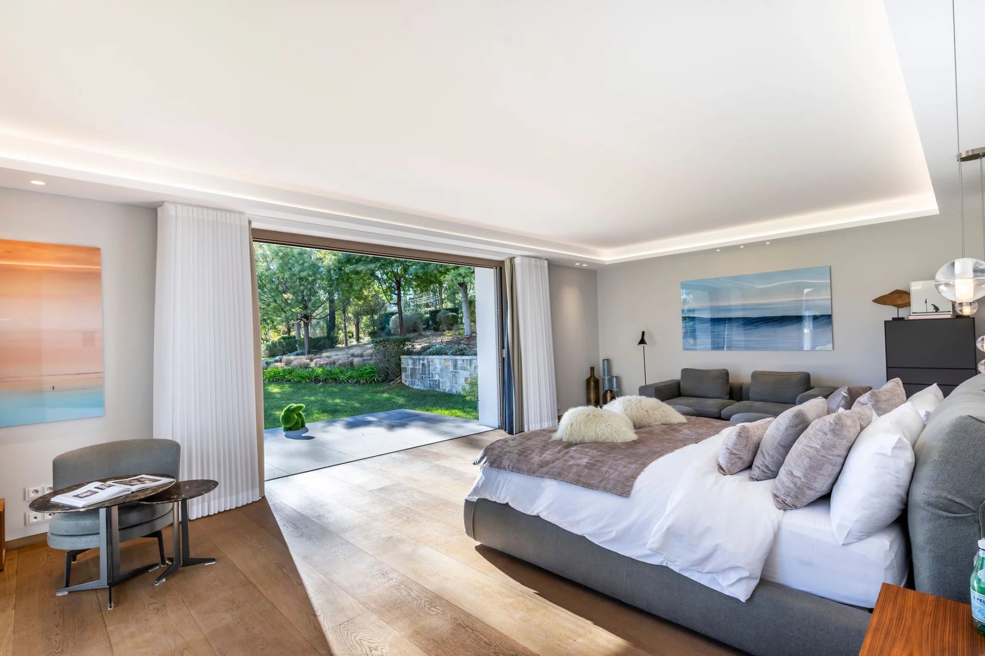 Co-exclusivity: In a coveted address within Mougins, this architectural masterpiece redefines contemporary luxury living through its bold geometric volumes and seamless integration with the surrounding landscape. Set within 1.3 hectares of meticulously landscaped grounds, the property presents a striking silhouette with its crisp white façades, green roof elements, and LED lighting system that transforms the estate at nightfall. The villa's 1,100 sqm interior showcases exceptional spatial design, with soaring ceilings and walls of glass creating an atmosphere of boundless light and space. The remarkable reception room serves as the home's centerpiece, a state-of-the-art kitchen that flows into an elegant dining area. 9 sumptuous en-suite bedrooms, including a magnificent master suite offer unparalleled comfort. The comprehensive amenities include a professional cinema, serene spa with sauna, temperature-controlled wine cellar. A discreet elevator connects the villa's multiple levels. Outdoors, the spectacular 25-meter heated pool extends from the main structure, complemented by a fully-equipped pool house. The estate's functionality is enhanced by an independent caretaker's residence, generous garage, and ample parking accommodations. This exceptional property represents the pinnacle of technologically advanced living, with comprehensive home automation systems controlling every aspect of the environment with effortless precision.