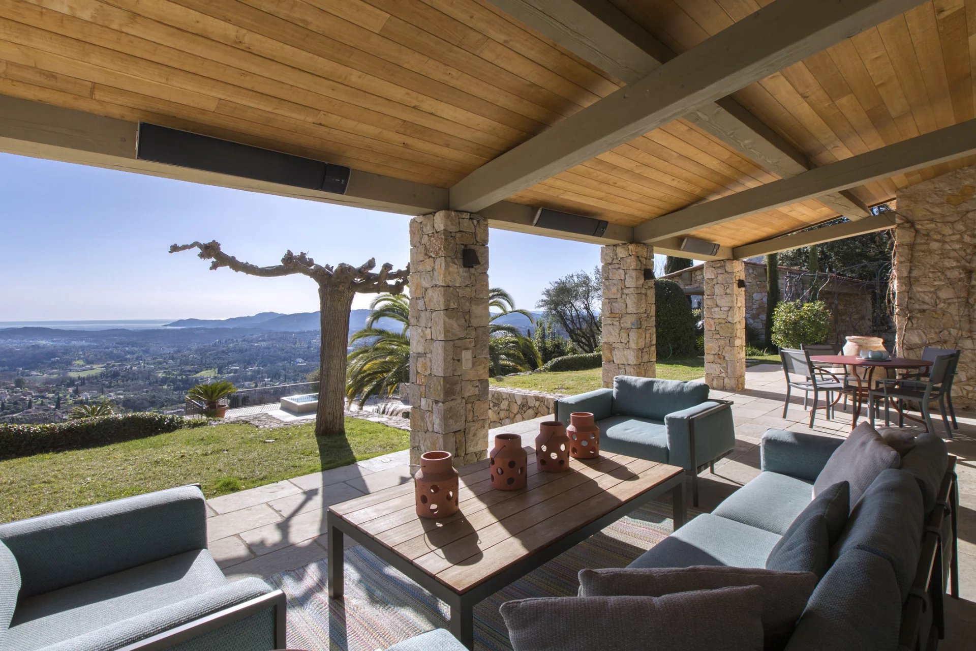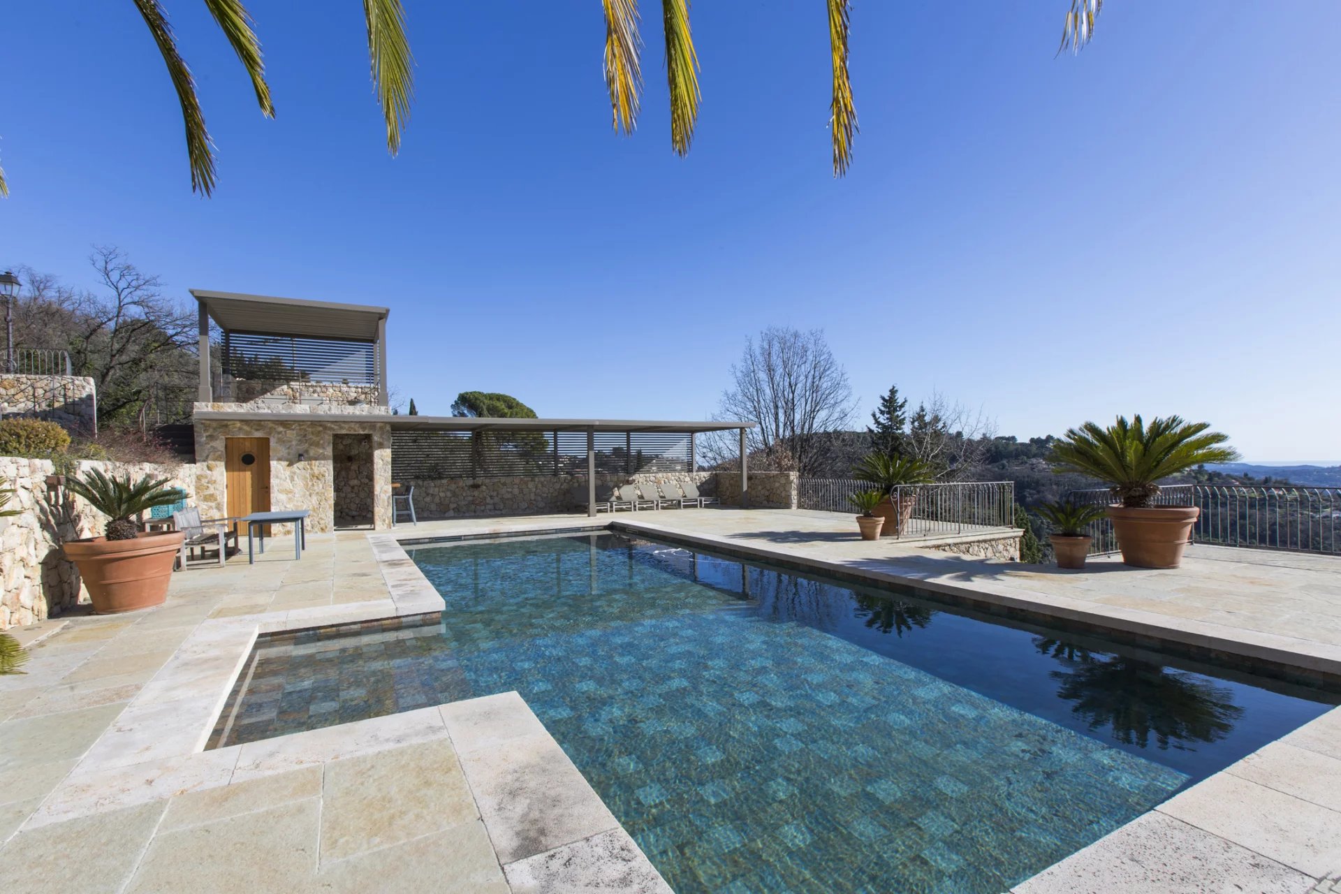 This beautifully renovated stone bastide offers an unmatched level of privacy and tranquility. Renovated with impeccable attention to detail and luxurious materials, this designer home provides a blend of comfort and elegance. The ground floor features an entrance hall, leading to a spacious and light-filled living room with high ceilings. This room opens directly onto a heated covered terrace, while an elegant TV room. 5 ensuite bedrooms for owners or guests. An independent guest house provides a private retreat with a bedroom, shower room, and charming terrace. The pool area boasts a large heated saltwater pool, a jacuzzi, an outdoor shower, and a pool house with a kitchenette and bar for dining and entertaining.