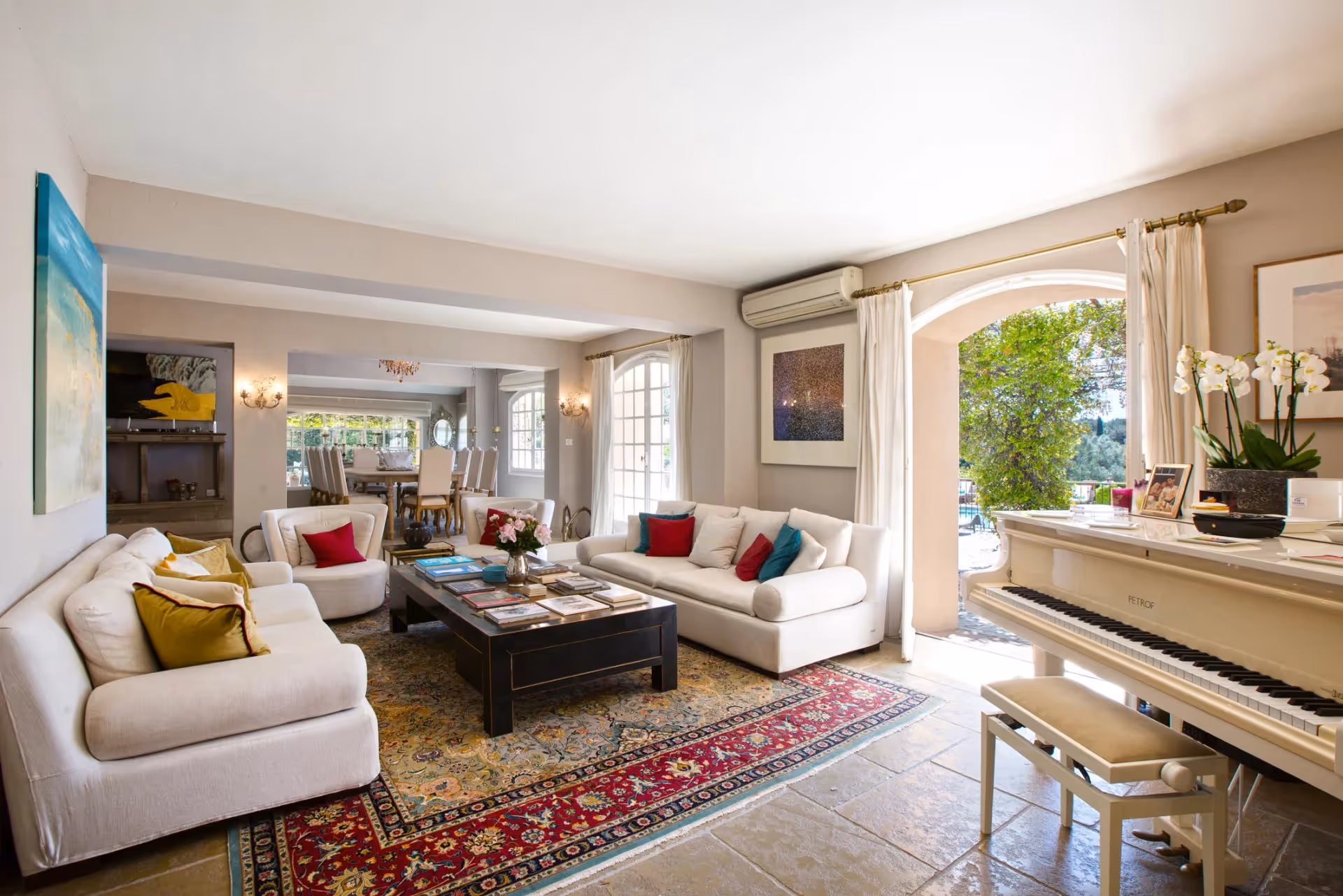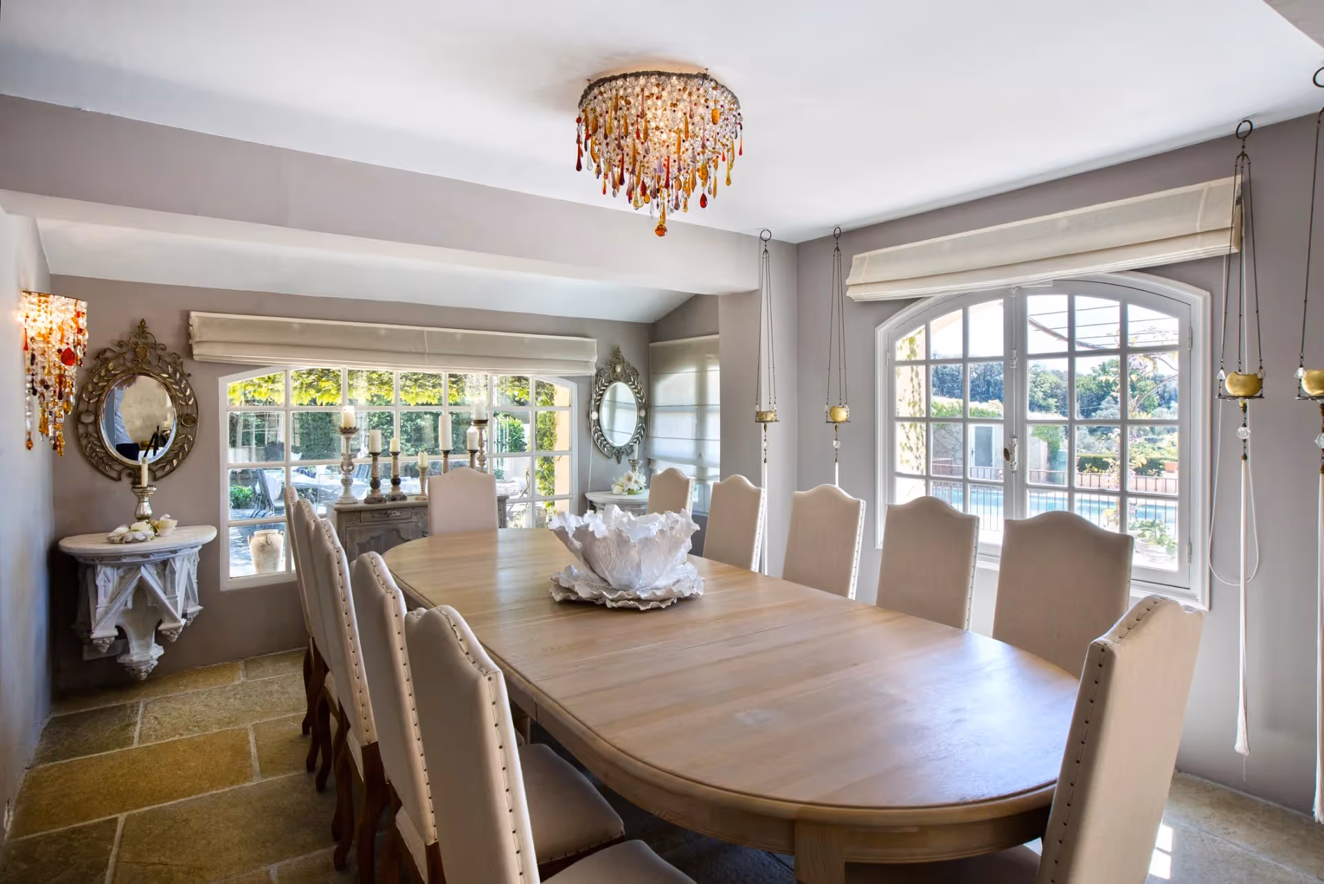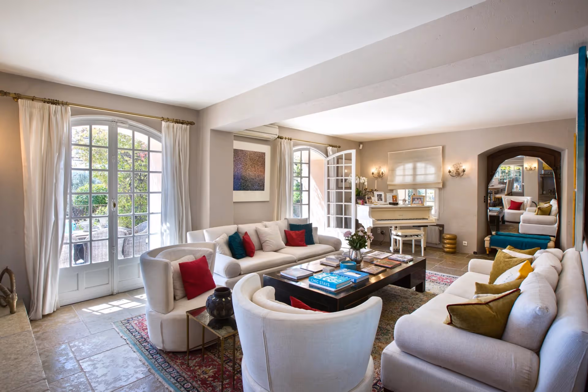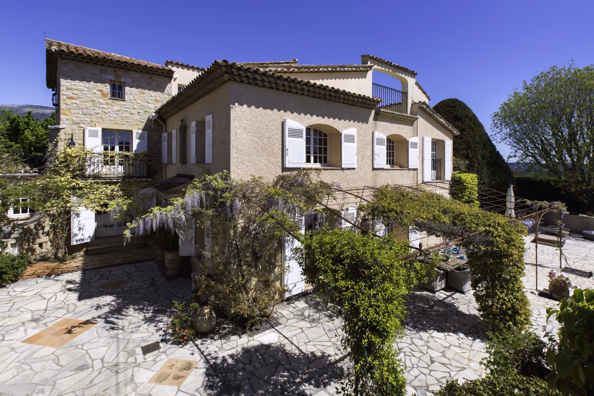 Co-exclusive: Set within approximately 1.5 hectares of landscaped gardens, this former farmhouse offers a peaceful country lifestyle. The estate includes: • a main house with 6 bedrooms and 6 bathrooms, • an independent caretaker’s house (2 bedrooms, 2 bathrooms), • two guest cottages: one with 3 bedrooms, 3 bathrooms, a living room and kitchen; the other with 2 bedrooms, 2 bathrooms and a large yoga room, • plus a charming guest chalet discreetly set within the gardens. Outside, the grounds feature a pond, an olive grove, a tennis court and several pétanque courts. Multiple terraces and a swimming pool with open views over the countryside complete the property. In the main house: an entrance hall, a farmhouse kitchen with a separate pantry/prep kitchen, a library/home office, and a bright, generous reception and dining area.