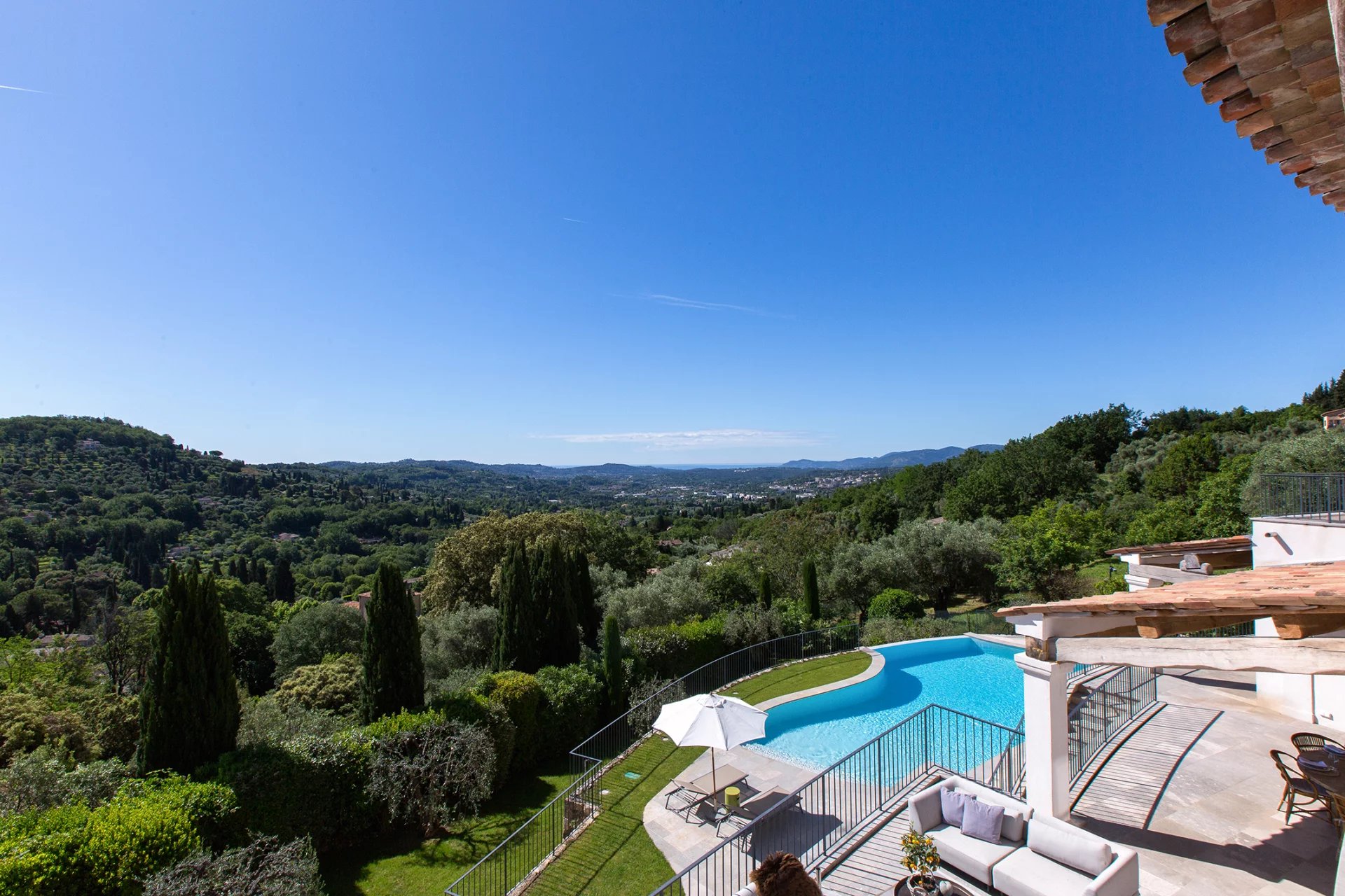 Tucked away in complete privacy, this approx. 730 sq m property enjoys panoramic views over the Peyloubet hills all the way to the Mediterranean Sea. Set on 5,000 sq m of landscaped grounds, it features an infinity pool and a fountain, offering a serene and refined setting. The villa opens onto an entrance hall leading to a bright reception area with a fireplace lounge, dining room, high-end open-plan kitchen, winter lounge, and a terrace with beautiful views. A cinema room completes this level. Upstairs: four en-suite bedrooms, including a superb principal suite with dressing room and private bathroom. On the garden level: a second spacious living room, a wine cellar with tasting area, an en-suite bedroom, a gym with massage area, an additional shower room, and a large pool house with storage. A three-car garage completes this exceptional property.