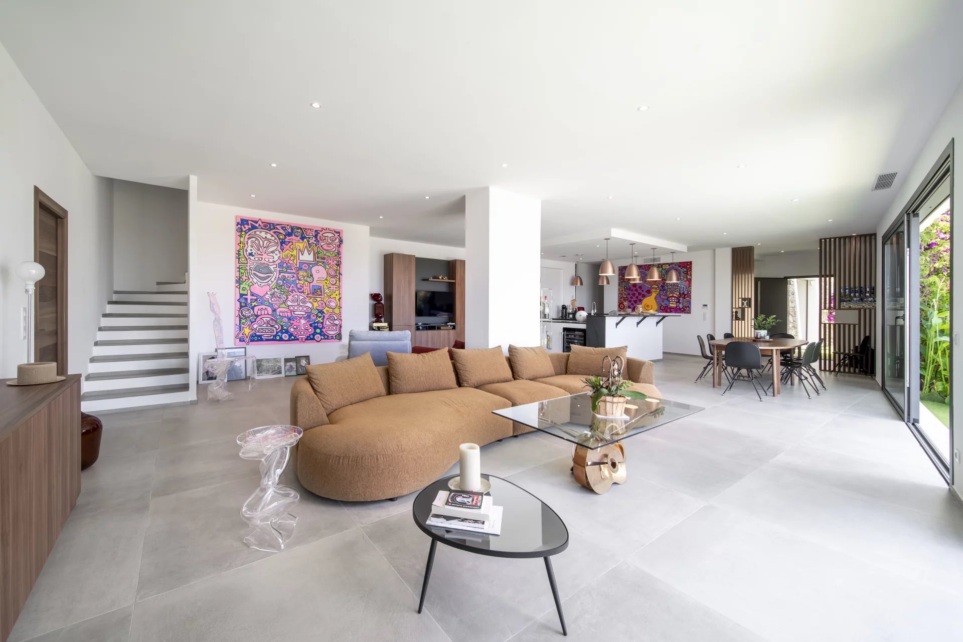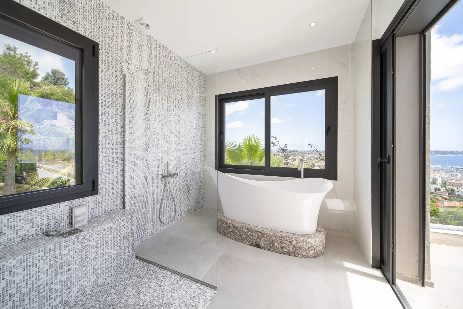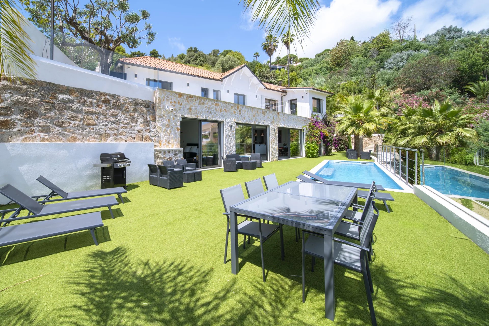 This beautiful villa is set on the hills of Golf-Juan and offers spectacular views over the Mediterranean Sea. Recently renovated in a modern style, the house offers around 300 m² of bright living space on a landscaped plot of 1,163 m². The villa has 5 spacious bedrooms and 5 bathrooms, ideal for family and guests. Large windows and sliding doors open the interior to sunny terraces and a swimming pool. Inside, the villa is designed for comfortable living with open-plan areas, a fully equipped kitchen. The property also includes a private garage, and parking for several cars. Only a short drive from Cannes and the beaches, this villa offers total privacy with easy access to all the best spots on the French Riviera.