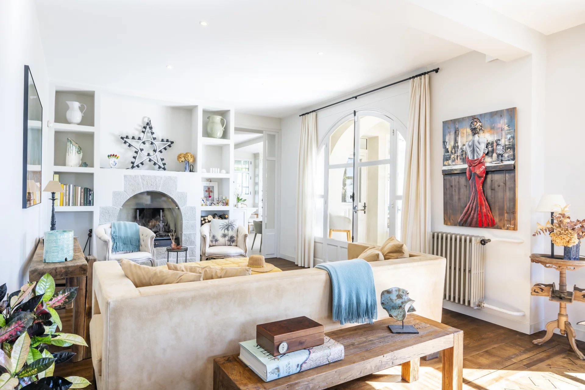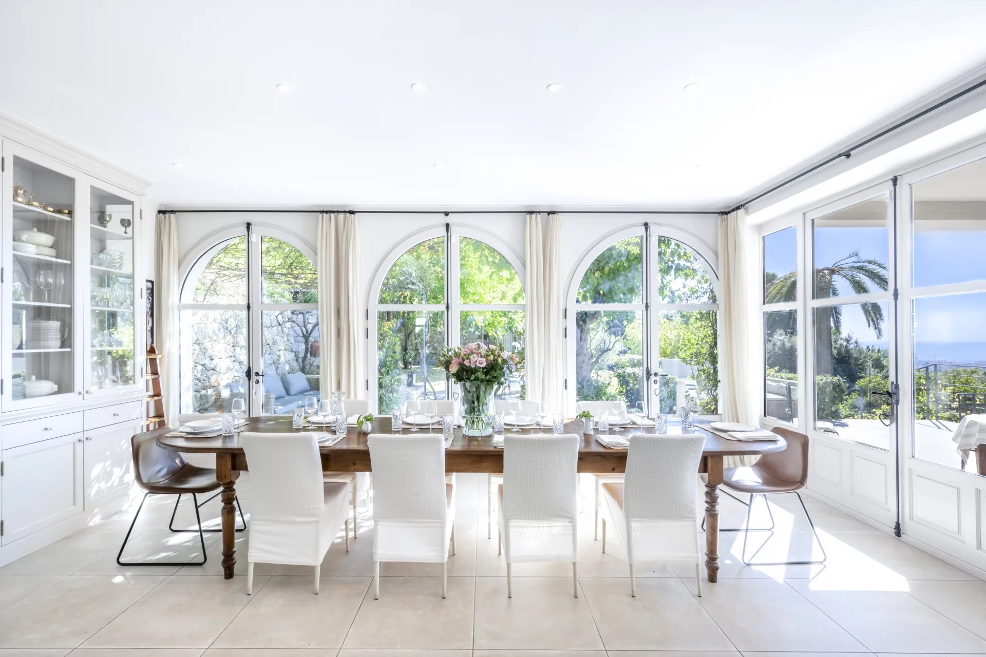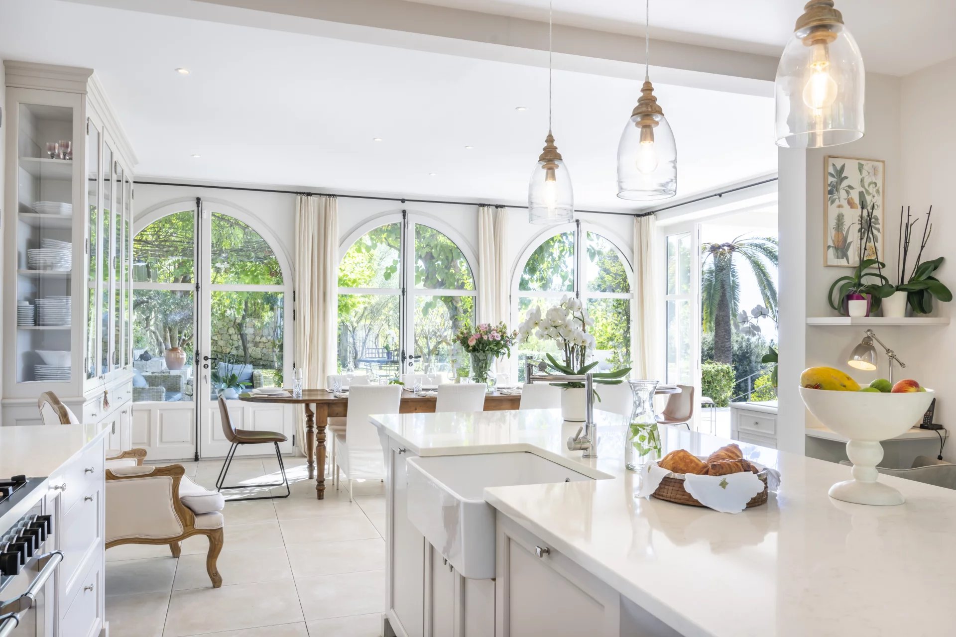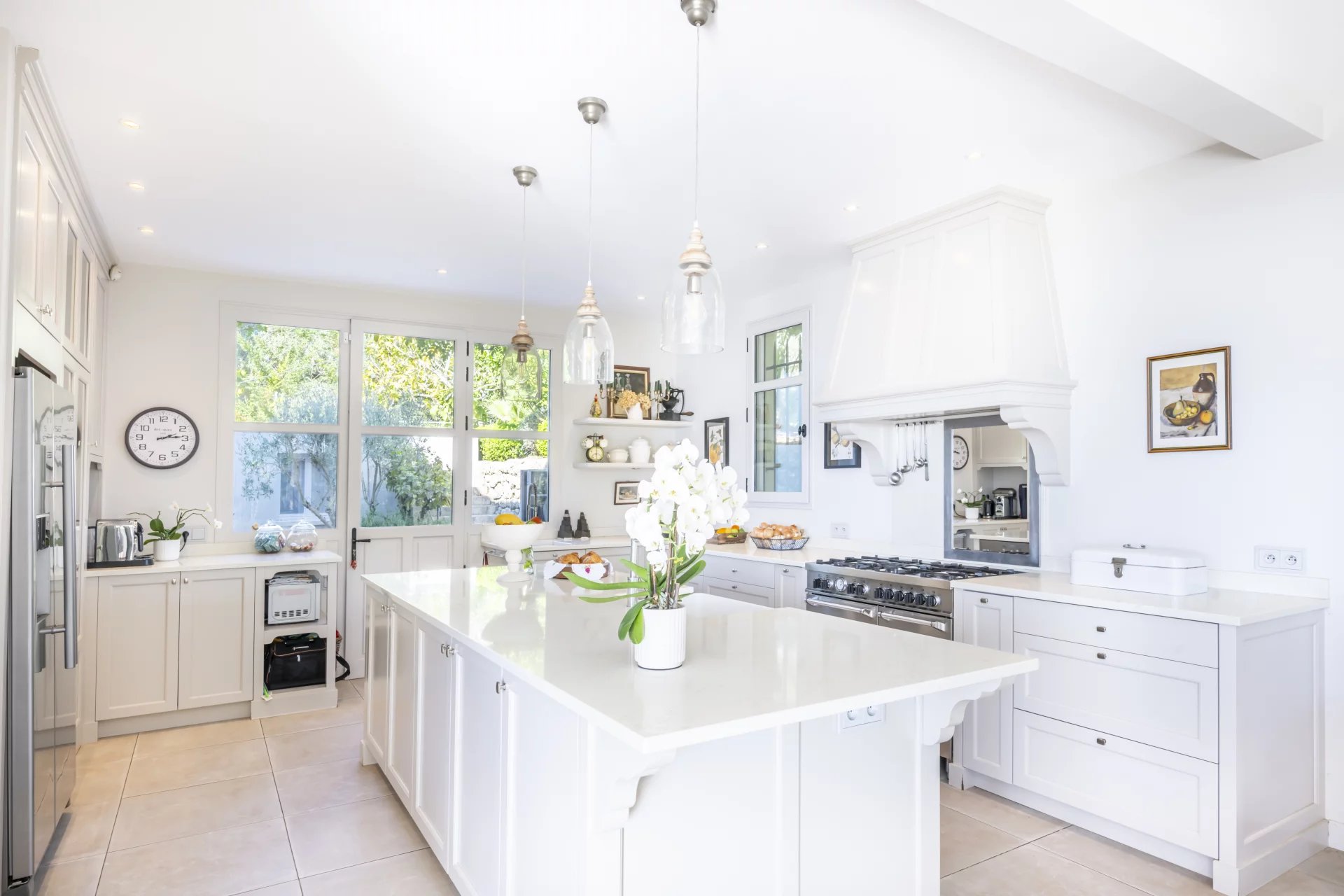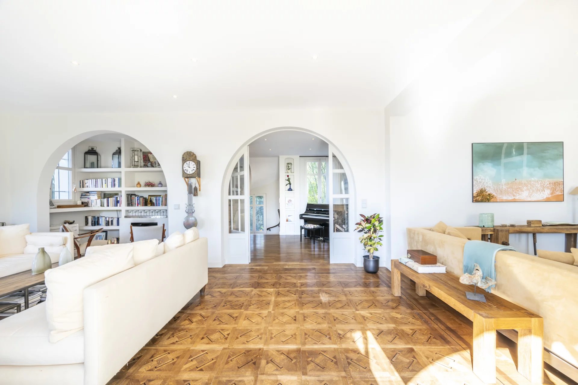 Villa Les Cascades is arranged over three levels plus a converted attic. The ground floor includes three bedrooms, three bathrooms, a guest WC, a wine cellar and a laundry room. The first floor features a double living room with two fireplaces, a very large kitchen with dining area, a piano room and an office. The upper floor is dedicated to the bedrooms, with three bedrooms and three bathrooms, including a spacious master suite with terrace, en-suite bathroom and study, as well as a second master bedroom with balcony. The top floor houses a large loft designed for children, with a TV room, a playroom/creative area, a bedroom and a full bathroom. At the back of the house is a large swimming pool. The 3,273 sqm plot includes several outbuildings.