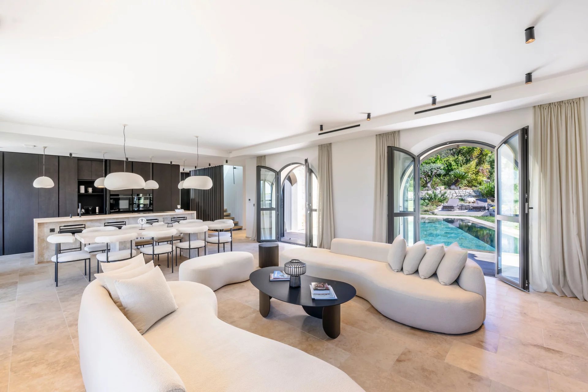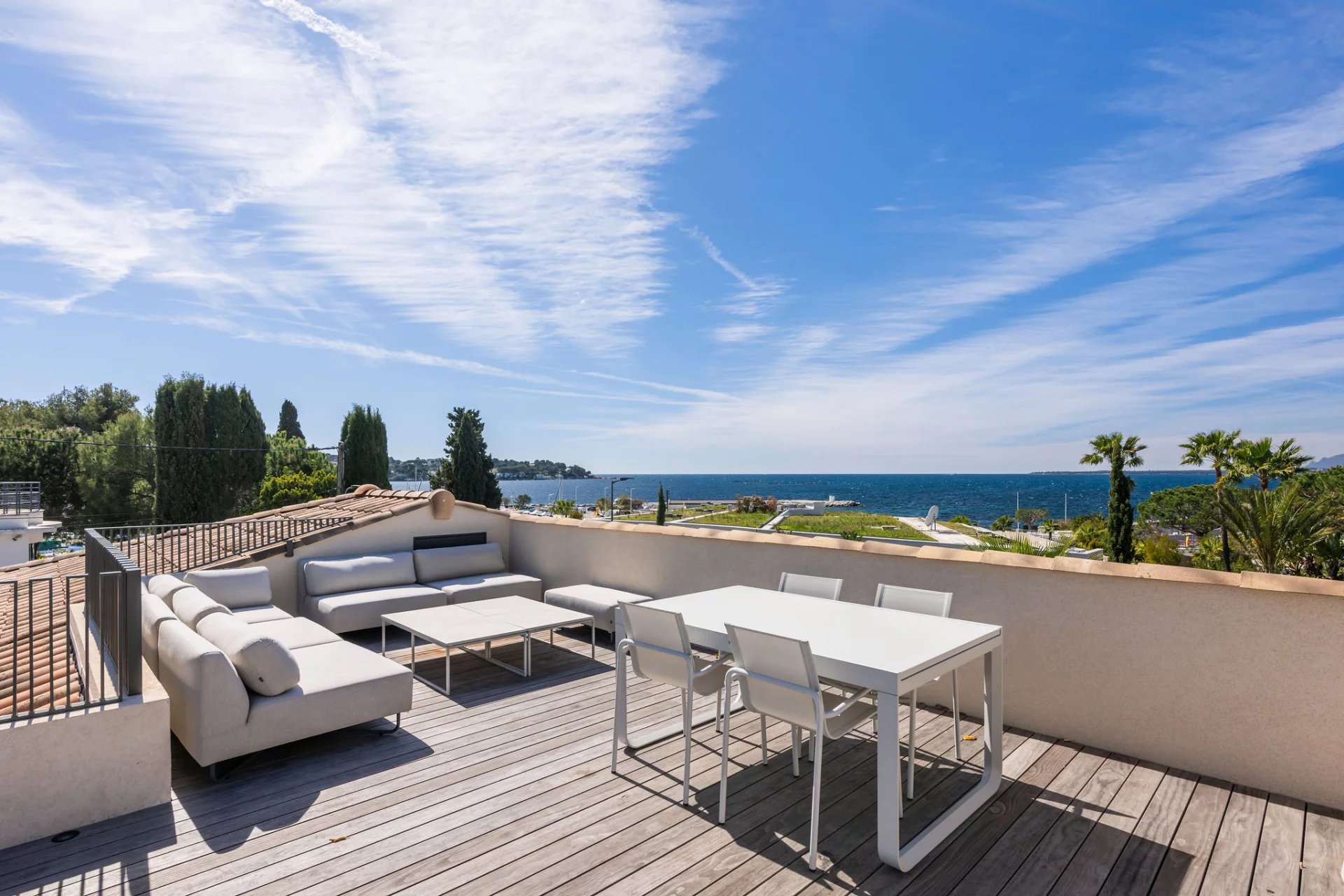 Gracing one of the most coveted addresses on the Cap d'Antibes, this stone villa commands an unrivalled first-line position on the Mediterranean shore with sweeping views from the fishermen's port to Cannes and the Lérins Islands. Renovated to the finest contemporary standards, the 341 m² residence set within 1,334 m² of landscaped grounds offers a luminous reception room, an elegant open-plan kitchen, a master suite with sea views and five additional bedrooms. Amenities include a private cinema, fitness room, home office, games room, swimming pool, rooftop terrace and secure garage. A rare seafront estate on the Cap d'Antibes.