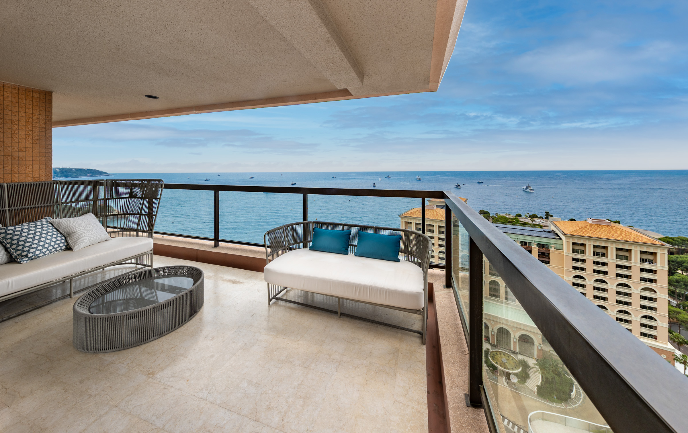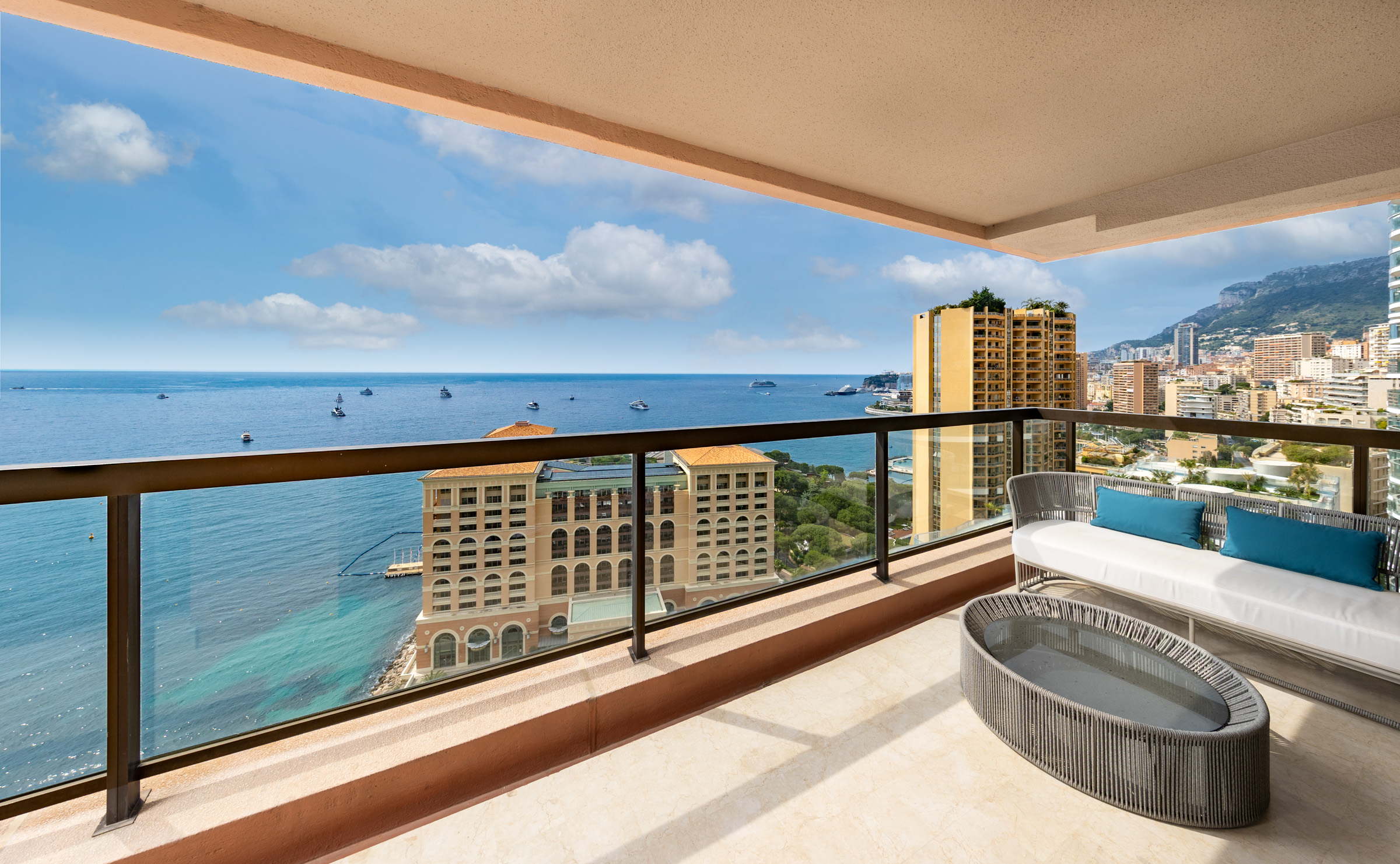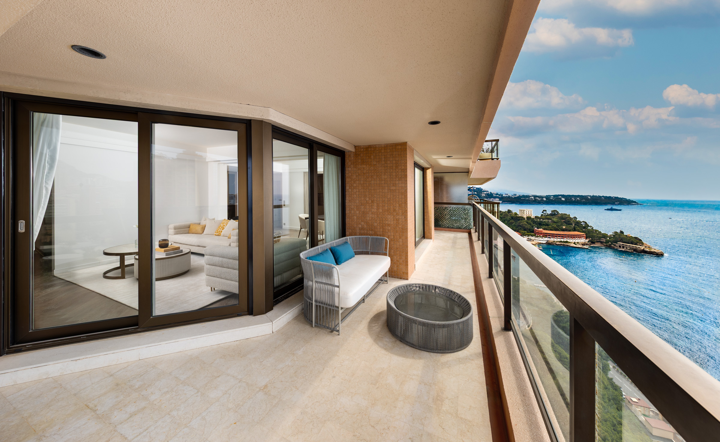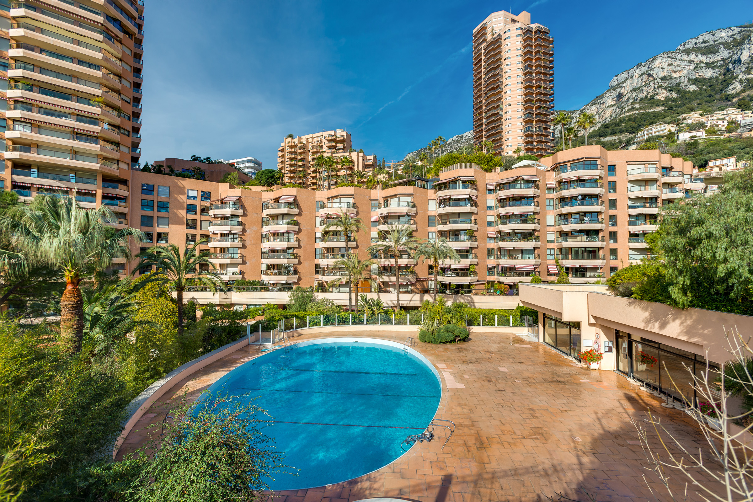 Located on a high floor of the prestigious Monte Carlo Sun residence, this fully renovated apartment offers exceptional views of the Mediterranean Sea. With a total area of 155 sqm, including a spacious 36.5 sqm terrace, the property features a bright double living room, a modern kitchen with terrace access, and two spacious en-suite bedrooms with direct access to the terrace. A third room serves as an office or guest bedroom, offering a comfortable working area and flexible use of space. The residence provides top-tier amenities including a swimming pool, concierge service, and landscaped gardens. A parking space and cellar are included. Ideal for those seeking a refined home or a high-quality investment in Monaco.