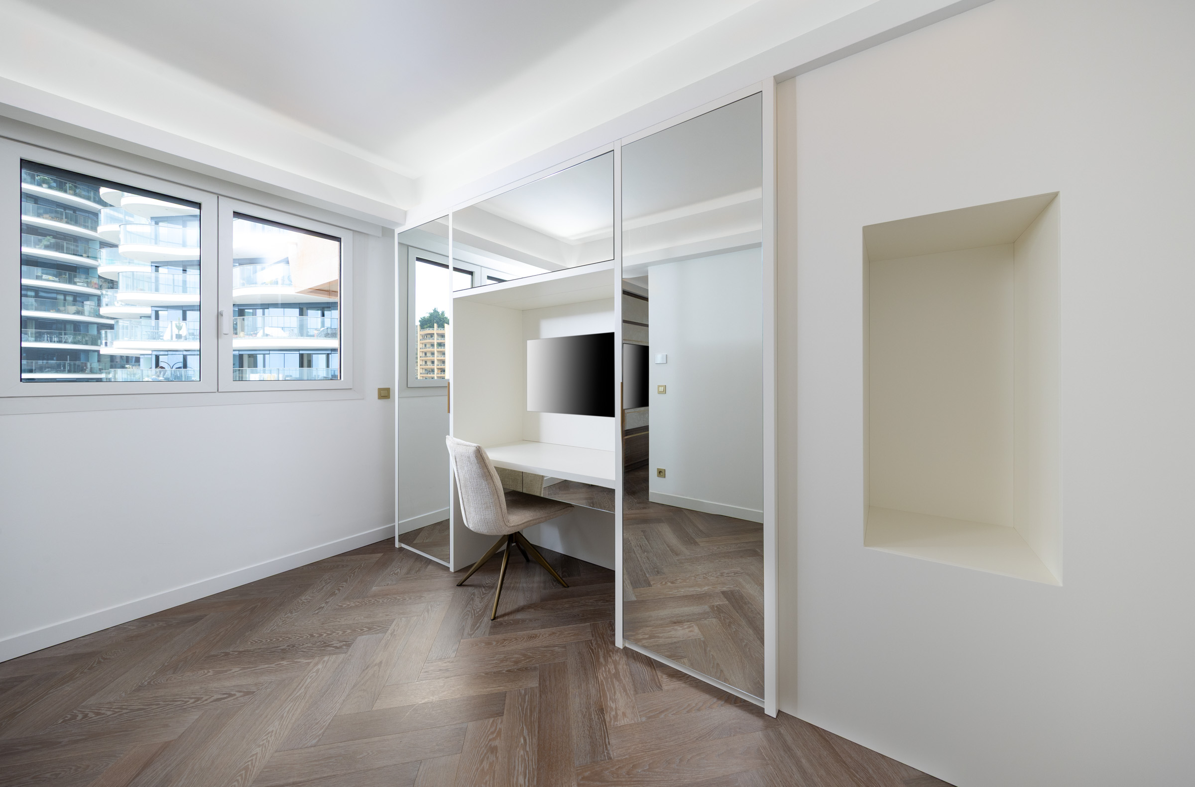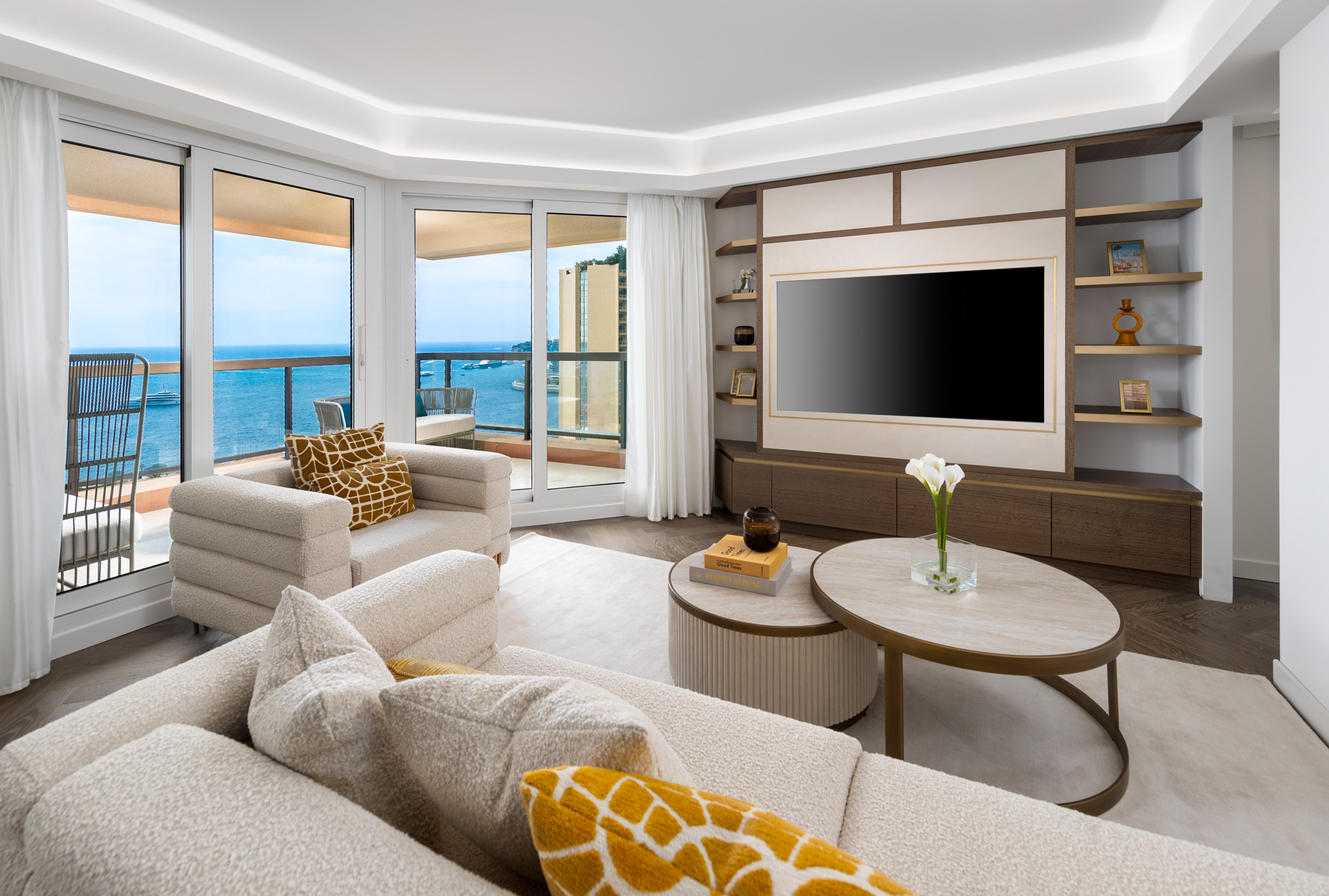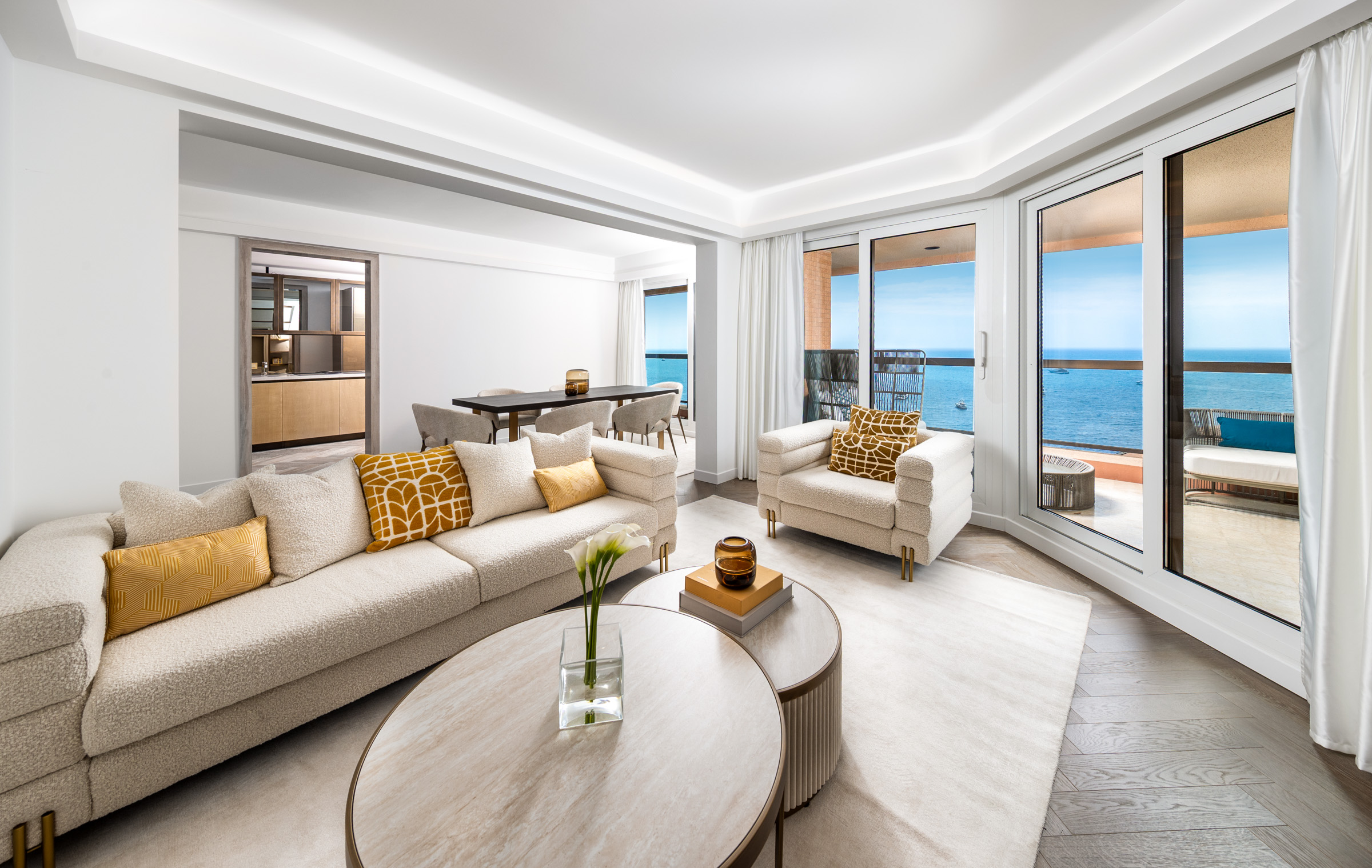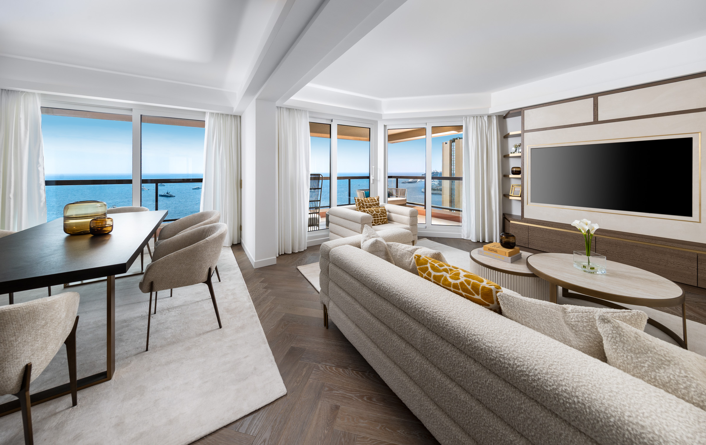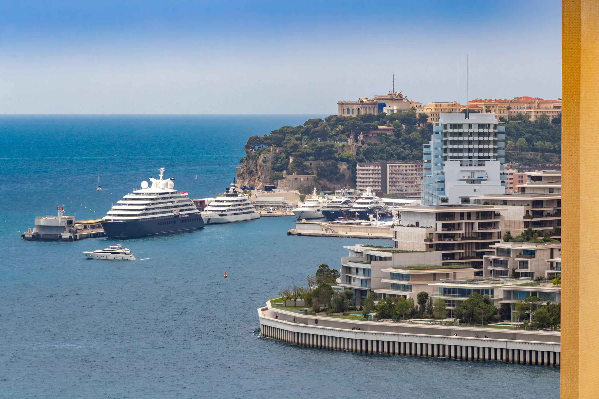 Located on a high floor of the prestigious Monte Carlo Sun residence, this fully renovated apartment offers exceptional views of the Mediterranean Sea. With a total area of 155 sqm, including a spacious 36.5 sqm terrace, the property features a bright double living room, a modern kitchen with terrace access, and two spacious en-suite bedrooms with direct access to the terrace. A third room serves as an office or guest bedroom, offering a comfortable working area and flexible use of space. The residence provides top-tier amenities including a swimming pool, concierge service, and landscaped gardens. A parking space and cellar are included. Ideal for those seeking a refined home or a high-quality investment in Monaco.