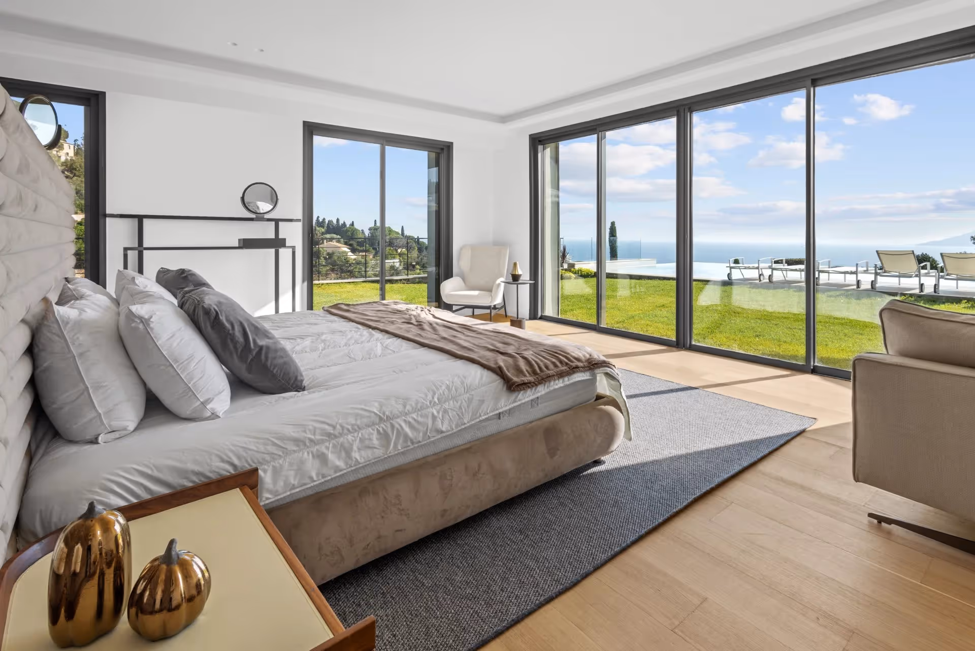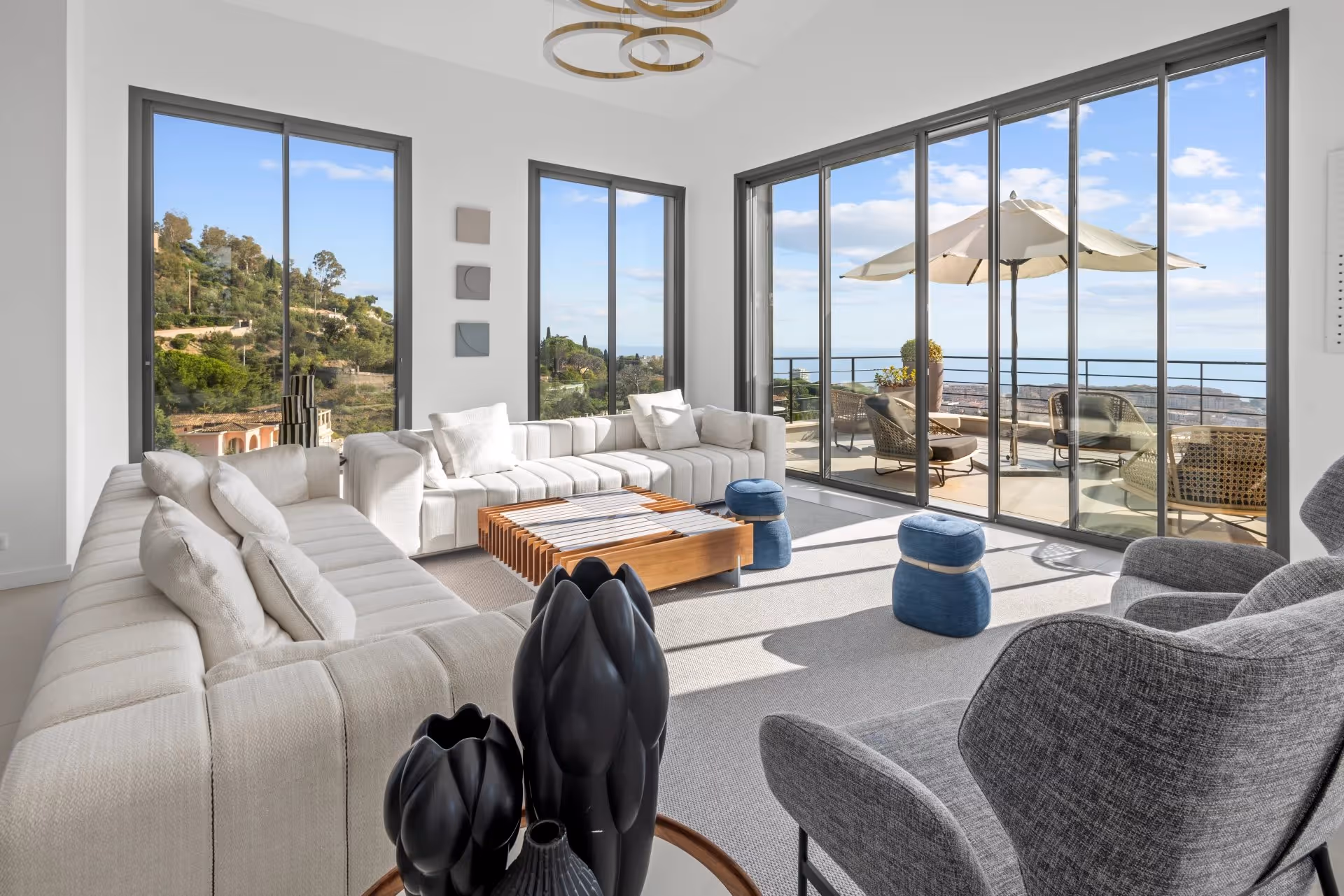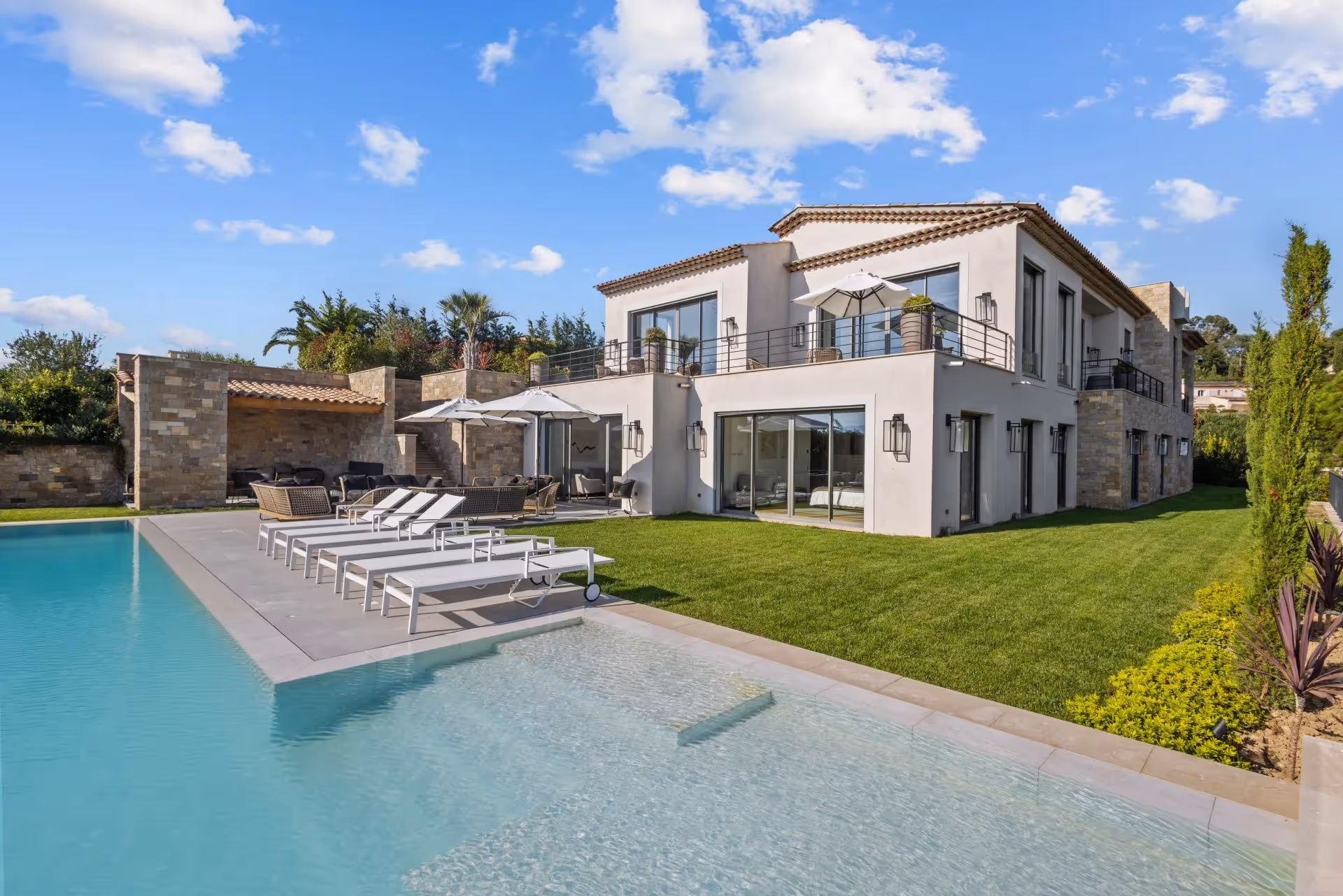 Située sur les hauteurs très recherchées de Cannes Croix des Gardes, Cette villa offre une vue panoramique sur la mer et le massif de l'Estérel. Le niveau principal propose un vaste espace de vie ouvert avec cuisine haut de gamme, espaces de réception et une chambre en suite. Au niveau jardin, un second espace de vie avec cuisine s'ouvre directement sur la piscine à débordement. La suite principale dispose d'un dressing sur mesure. Trois autres chambres en suite complètent l'ensemble. Jardins paysagers, triple garage et stationnements supplémentaires.