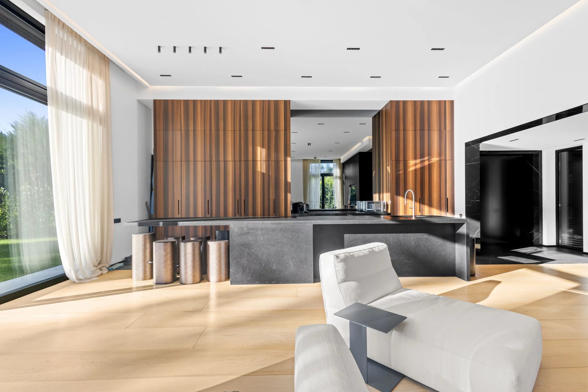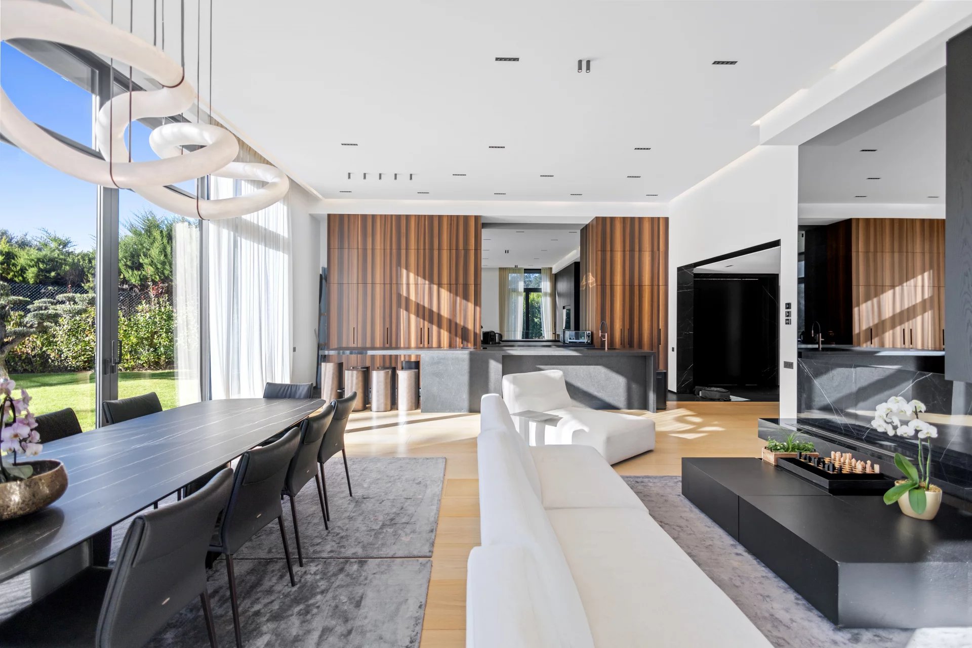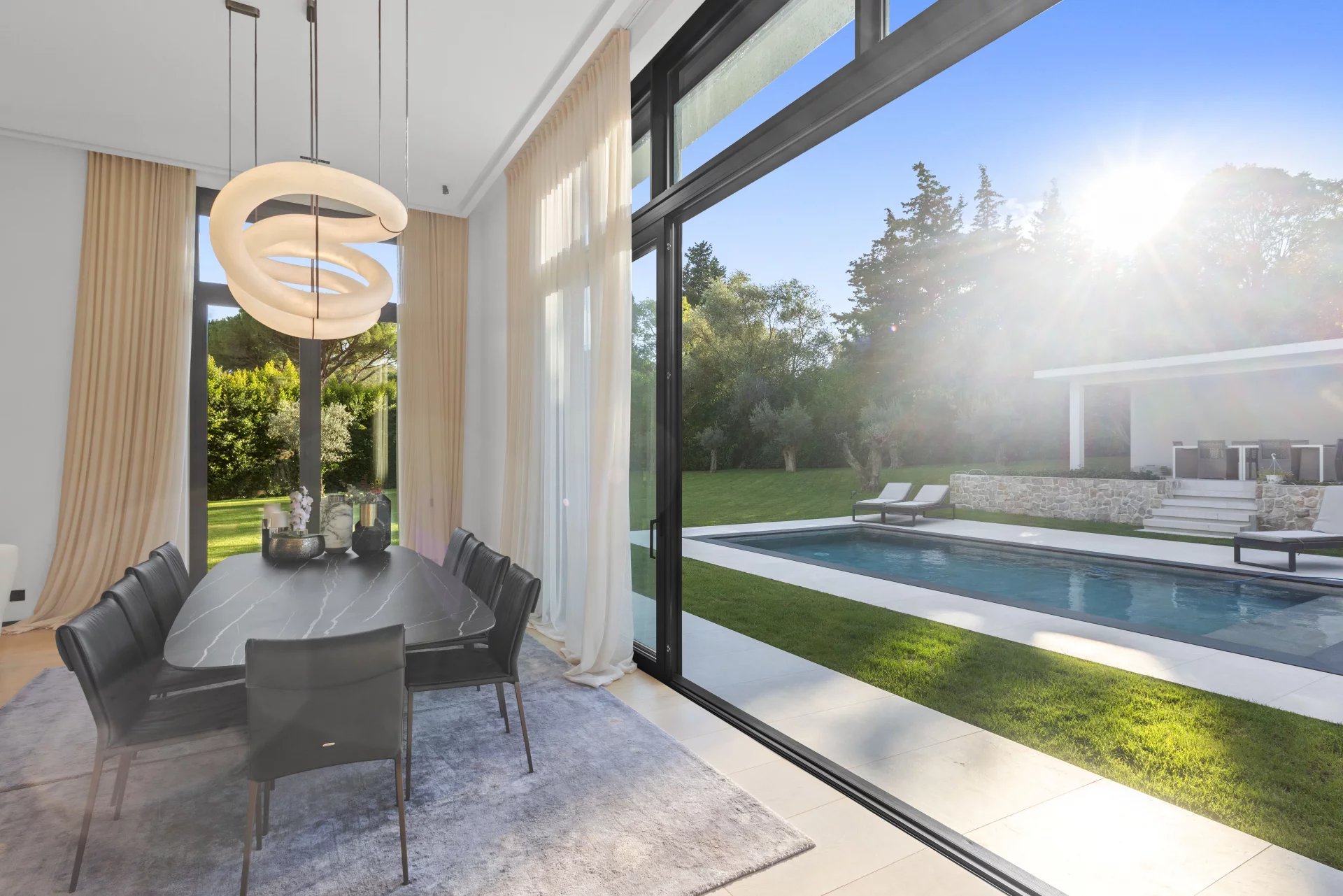 Nichée dans l'un des quartiers résidentiels les plus recherchés de Mougins, cette villa de 270 m² a été conçue avec une attention minutieuse portée aux détails et une confiance discrète dans le choix des matériaux. La lumière inonde le vaste espace de vie principal, qui s'ouvre généreusement sur une cuisine sur mesure — un cadre naturel pour recevoir comme pour la vie de tous les jours. La suite parentale occupe une aile privative, avec son propre salon et salle de bains attenante. Quatre chambres supplémentaires et deux salles de bains, toutes pensées individuellement, offrent un accueil généreux pour la famille et les invités. Le terrain de 1 788 m² se déploie autour de la maison avec un aménagement paysager soigné, une piscine aux lignes épurées et contemporaines, et un pool house entièrement équipé pour la vie en extérieur. Des places de parking privatives complètent l'ensemble. À quelques minutes en voiture des meilleures adresses de Mougins — écoles de renom, boutiques, et les parcs protégés de la campagne environnante.