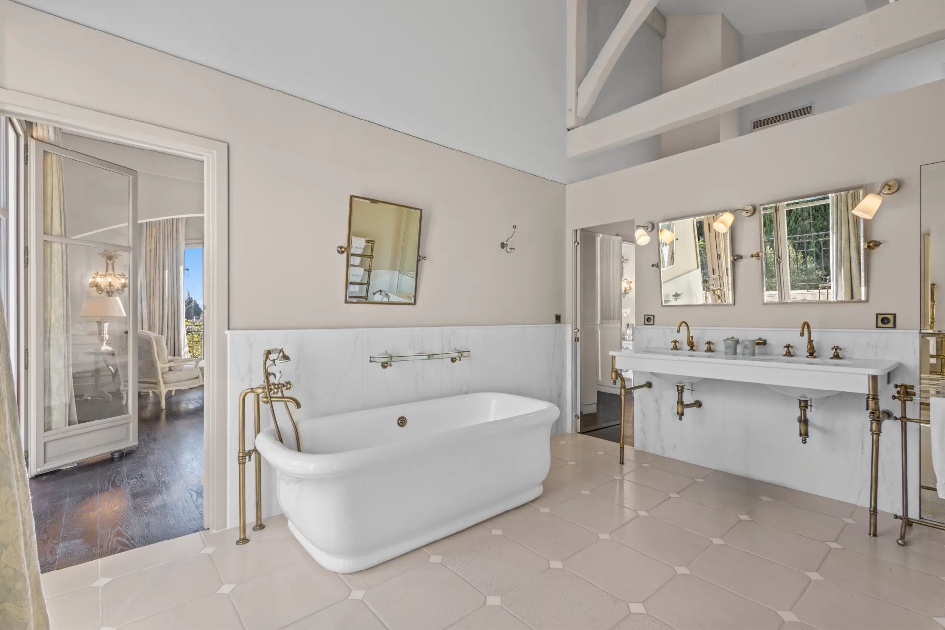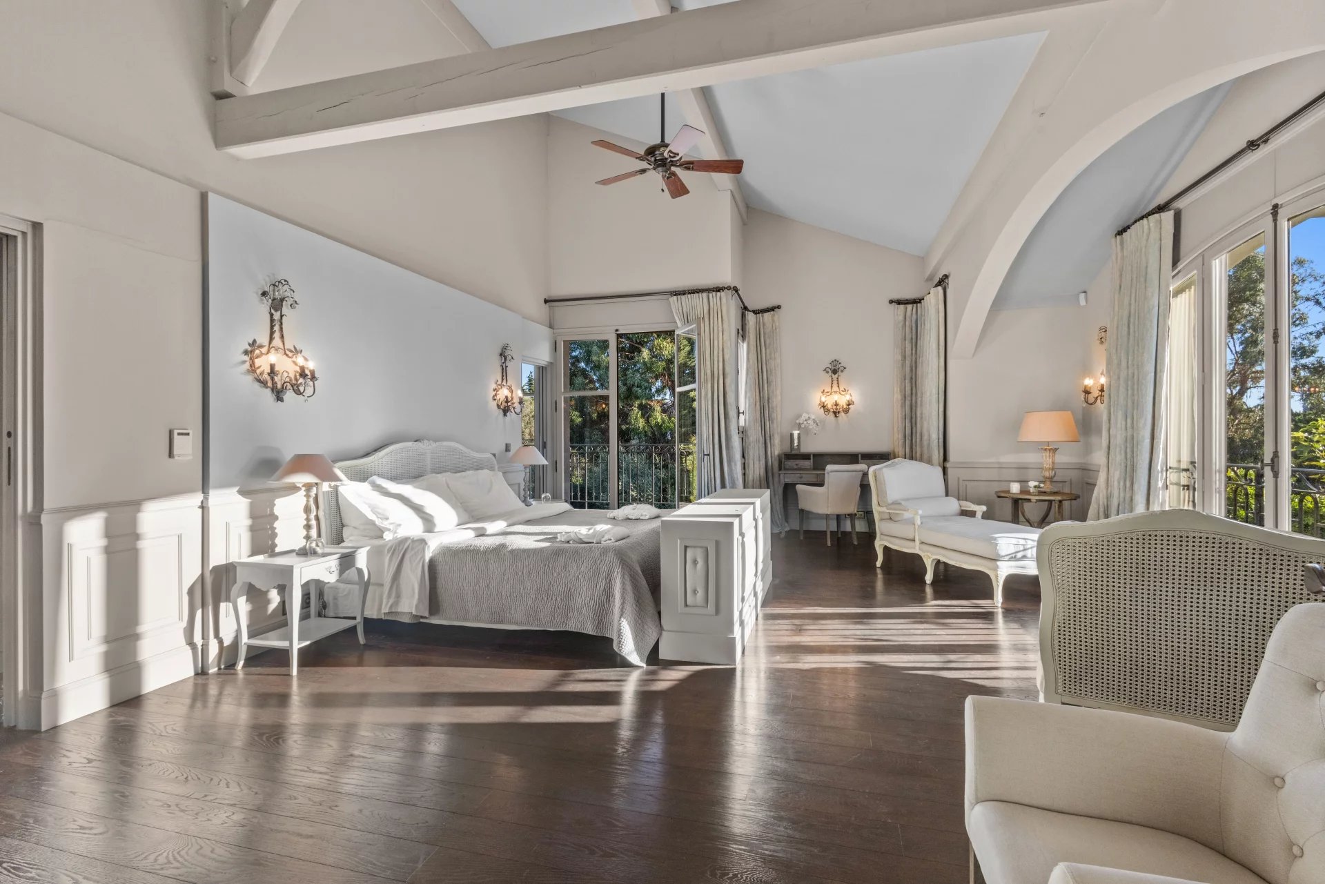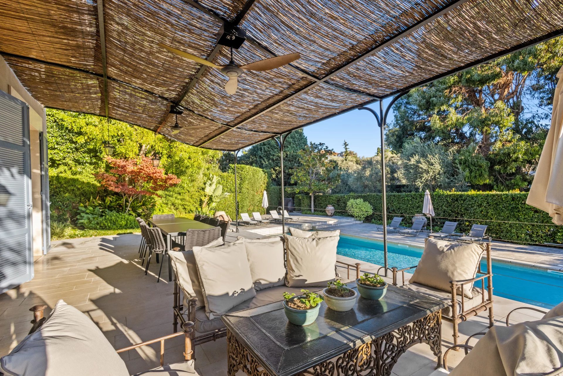Cette captivante villa provençale sur la rive occidentale du Cap d'Antibes présente une synthèse magistrale de révérence historique et de raffinement contemporain, avec des éléments du domaine datant de deux siècles. Le rez-de-chaussée abrite un salon chaleureux avec cheminée, une salle à manger, une cuisine, une bibliothèque et une chambre avec salle de bain attenante. À l'étage, la suite principale dispose d'une salle de bain privative et d'un dressing, s'ouvrant sur une terrasse aux côtés de quatre autres chambres avec salles de bain privatives. L'espace de vie extérieur offre une pergola ombragée en bambou surplombant la piscine azur, tandis que le paysage environnant met en valeur des oliviers centenaires qui non seulement offrent une beauté pittoresque mais produisent également l'huile d'olive du domaine. Les amateurs de tennis apprécieront le court professionnel, tandis que les installations de bien-être comprenant une salle de fitness entièrement équipée, un sauna et un hammam offrent détente et régénération. Un pavillon d'invités séparé assure l'intimité des visiteurs dans ce sanctuaire quintessentiel de la Riviera, à quelques pas de plages immaculées.