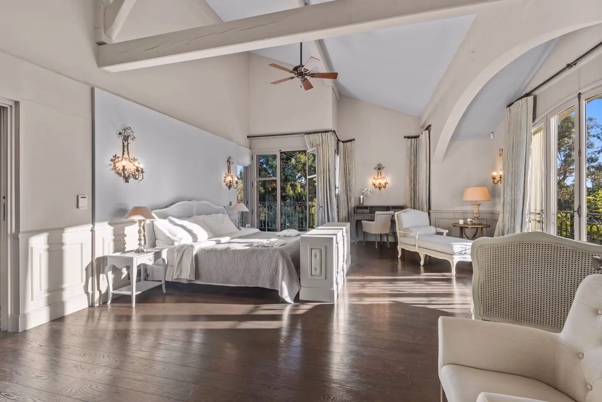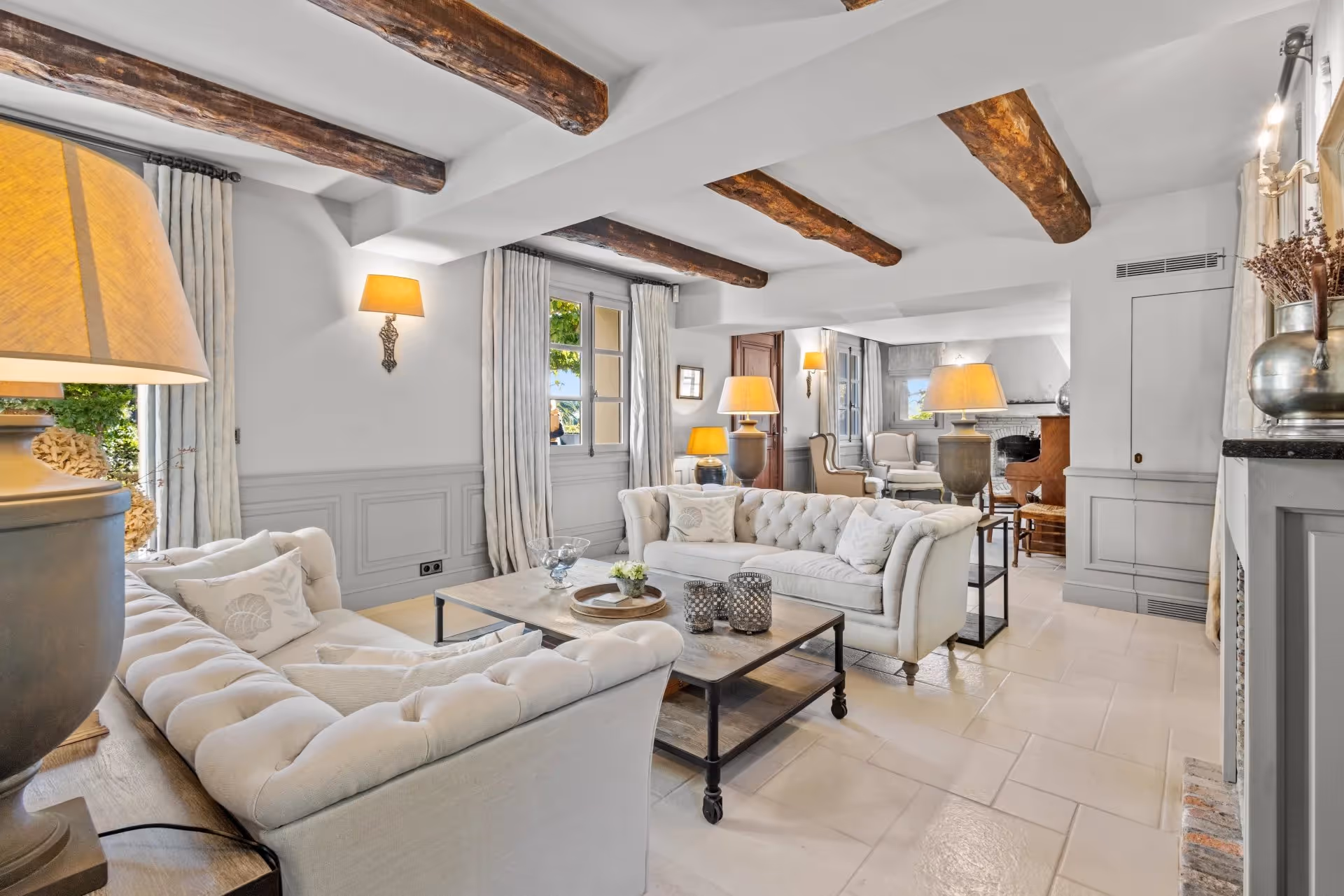 Sur la rive ouest du Cap d'Antibes, cette villa provençale de charme, dont certaines parties remontent à près de 200 ans, marie caractère historique et confort contemporain. Au rez-de-chaussée : salon avec cheminée, salle à manger, cuisine, bibliothèque, et une chambre en suite. À l'étage : suite principale avec salle de bains, dressing et terrasse, ainsi que 4 chambres en suite. À l'extérieur, une pergola en bambou ombrage les espaces de réception face à la piscine. Le jardin met en valeur de superbes oliviers centenaires, produisant l'huile d'olive du domaine. Prestations : court de tennis professionnel, salle de sport, sauna et hammam. Un pavillon d'invités indépendant complète l'ensemble, à quelques pas des plages.