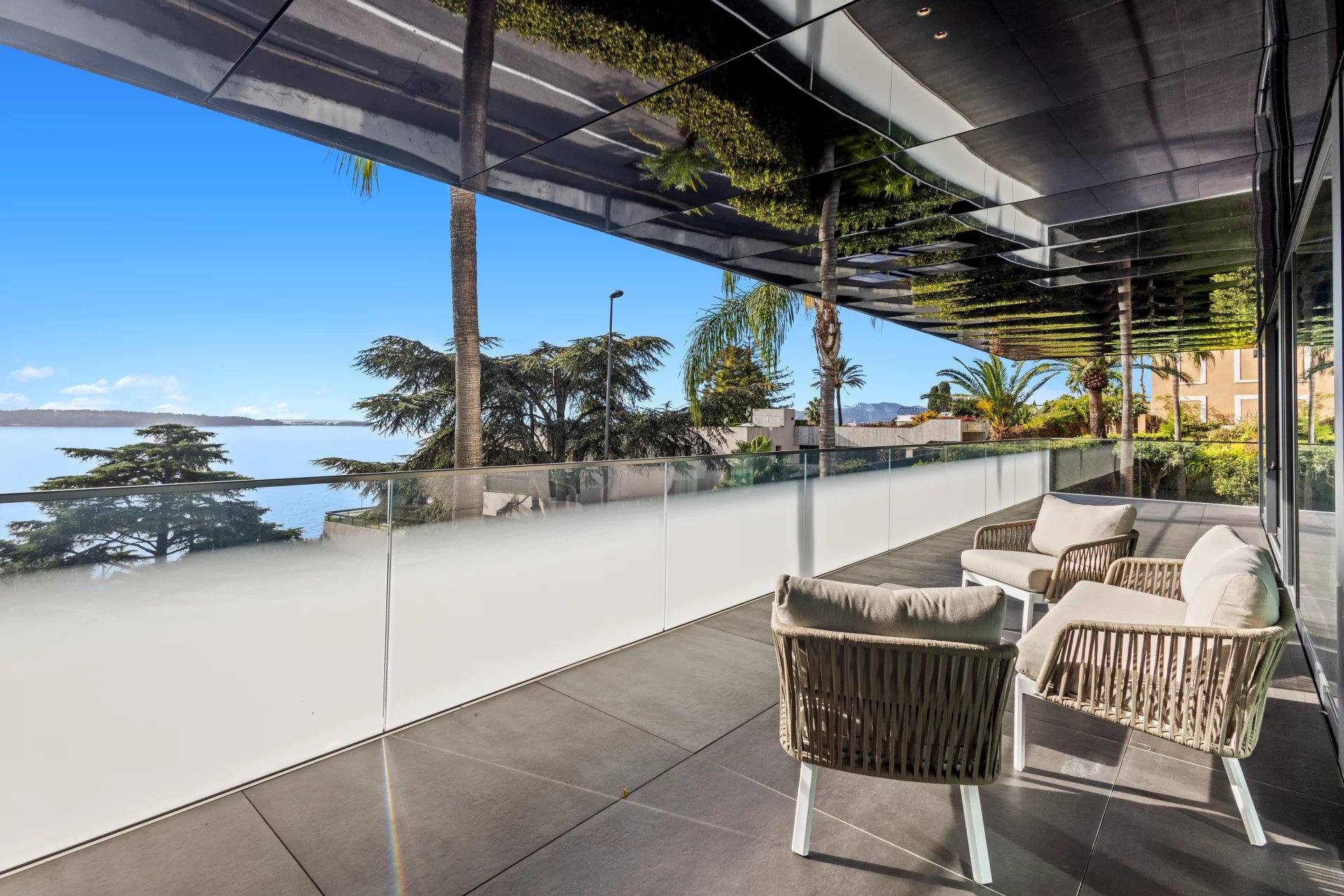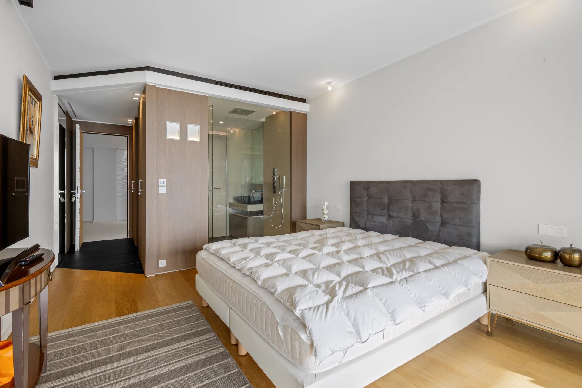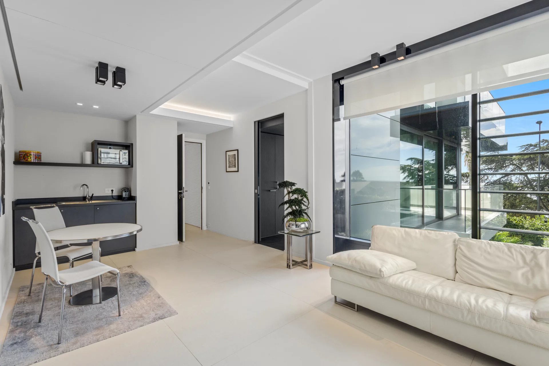 Cette résidence contemporaine en front de mer à Cannes Californie incarne l'essence du raffinement côtier par sa pureté architecturale et ses vues sans compromis. La terrasse élégante, entourée de verre, offre une expérience intérieur-extérieur harmonieuse, avec des balustrades en verre qui préservent le panorama méditerranéen à perte de vue. L'intérieur soigneusement conçu de l'appartement présente des surfaces blanches immaculées, complétées par des éléments texturés subtils et des accents monochromatiques. La lumière naturelle inonde les espaces de vie. Offrant deux chambres avec salles de bains privatives, cet appartement peut être joint à l'appartement voisin. Cette résidence sécurisée comprend des installations de fitness, des équipements de spa et un garage privé—une convergence rare de tranquillité et de sophistication urbaine le long de la Côte d'Azur.