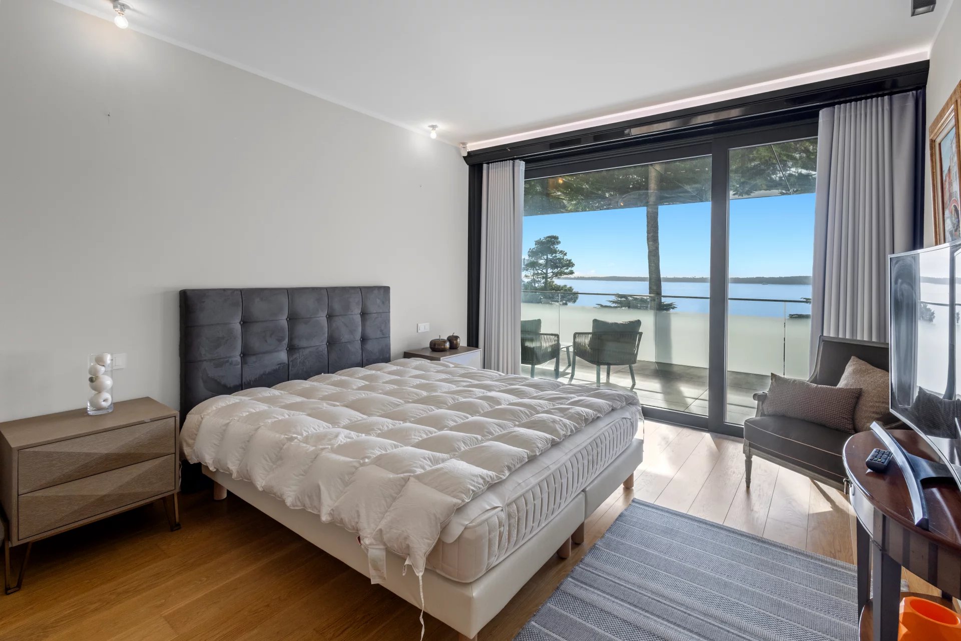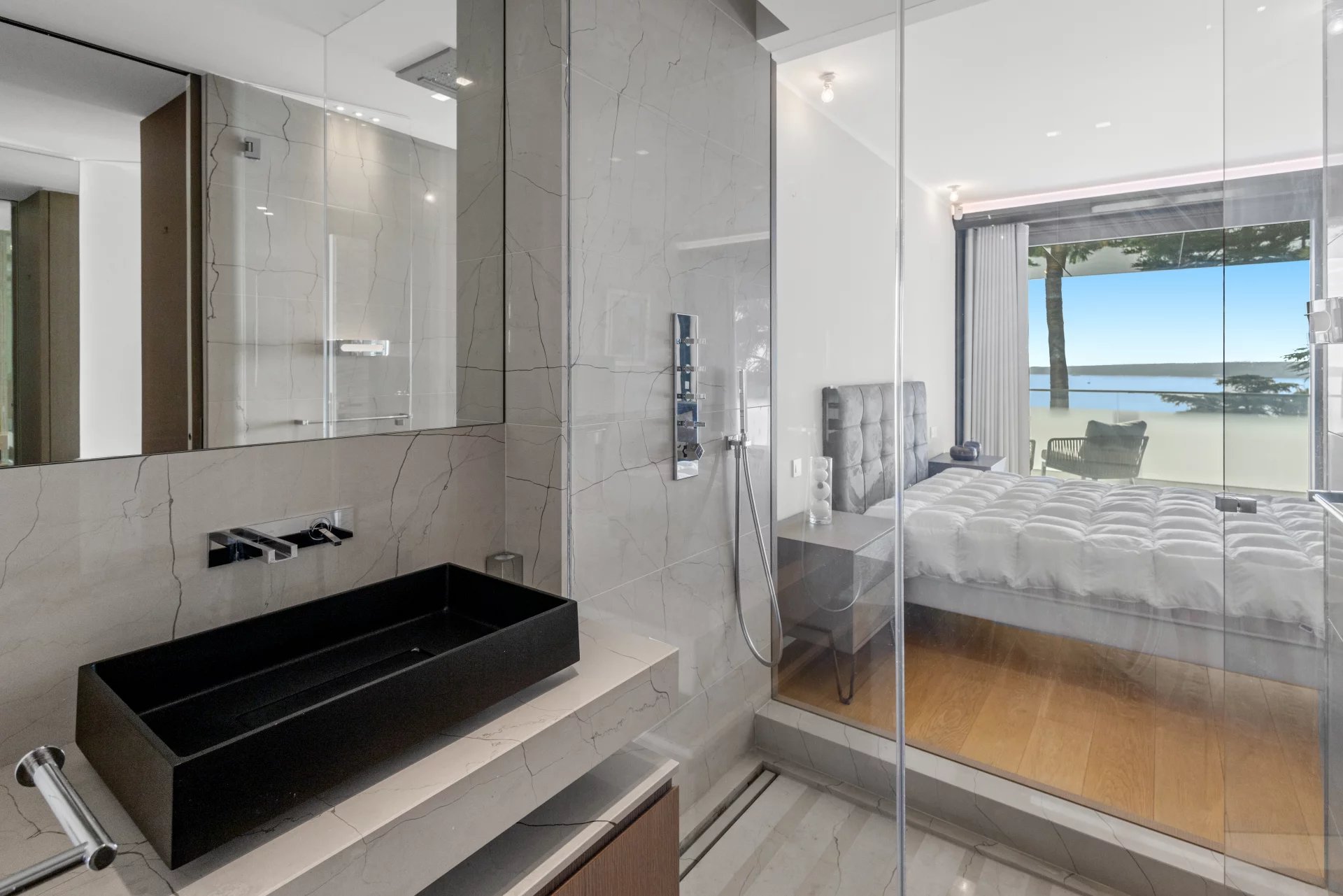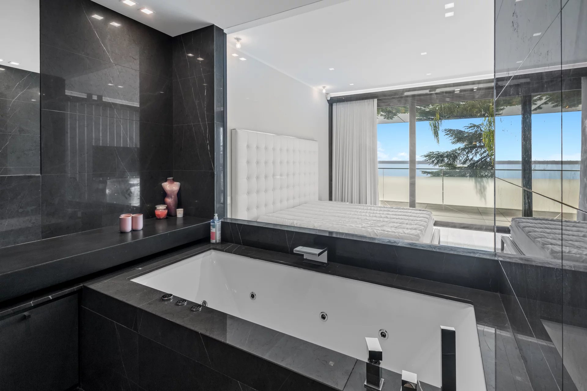 Cette résidence contemporaine en front de mer à Cannes Californie incarne l'essence du raffinement côtier par sa pureté architecturale et ses vues sans compromis. La terrasse élégante, entourée de verre, offre une expérience intérieur-extérieur harmonieuse, avec des balustrades en verre qui préservent le panorama méditerranéen à perte de vue. L'intérieur soigneusement conçu de l'appartement présente des surfaces blanches immaculées, complétées par des éléments texturés subtils et des accents monochromatiques. La lumière naturelle inonde les espaces de vie. Offrant deux chambres avec salles de bains privatives, cet appartement peut être joint à l'appartement voisin. Cette résidence sécurisée comprend des installations de fitness, des équipements de spa et un garage privé—une convergence rare de tranquillité et de sophistication urbaine le long de la Côte d'Azur.