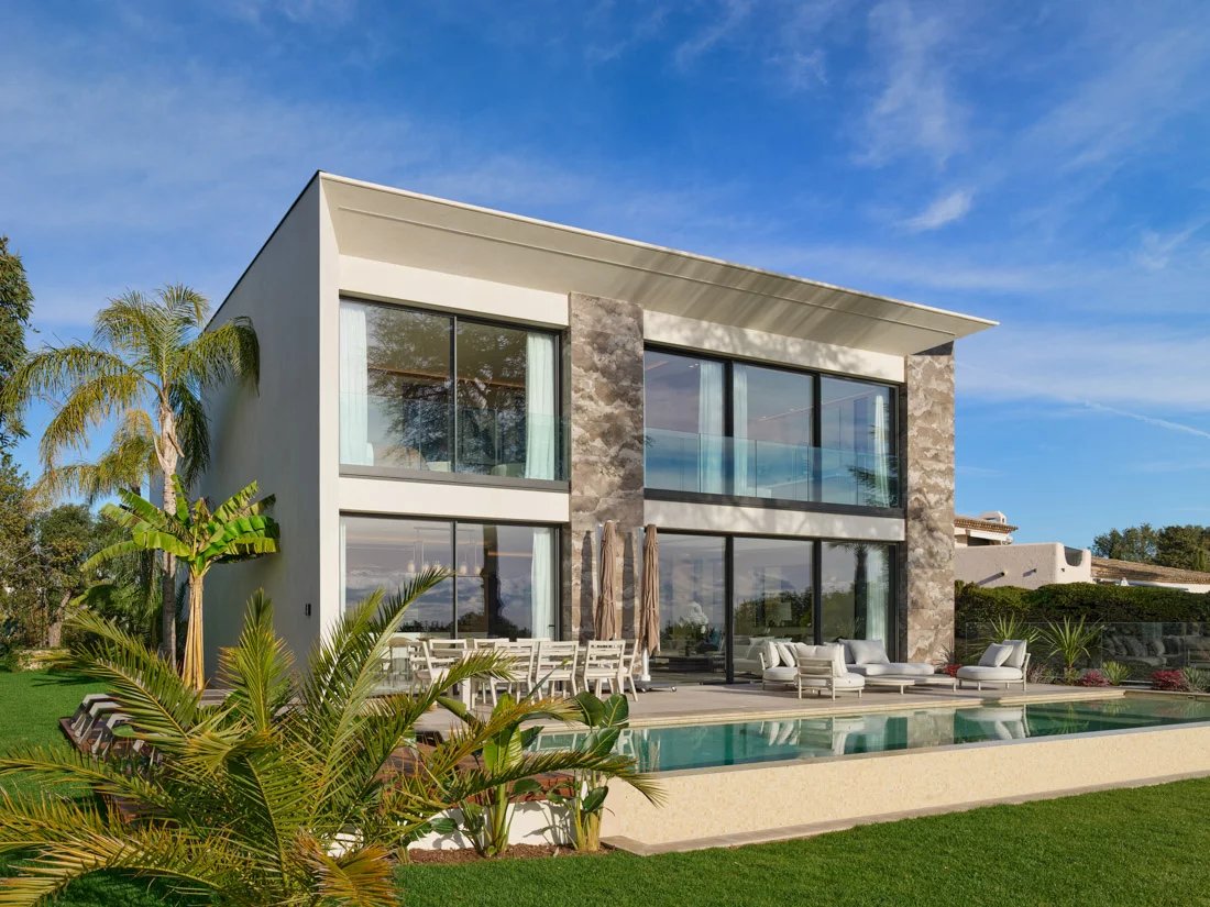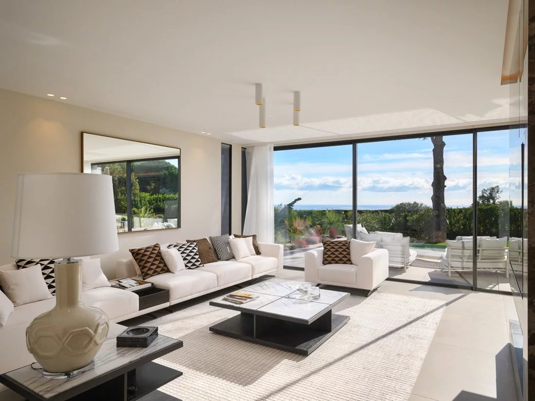 À Super Cannes, cette villa contemporaine au design architectural affirmé offre une vue mer panoramique et des prestations très haut de gamme. Les grandes baies vitrées s’effacent entièrement pour ouvrir les espaces de vie sur une vaste terrasse et une piscine à débordement face à la Méditerranée. Le niveau principal comprend un séjour lumineux avec cheminée, une cuisine gastronomique avec salle à manger, ainsi que 2 chambres en suite. À l’étage : une suite principale avec salle de bains et dressing, plus 2 chambres en suite. En rez-inférieur : espace bien-être complet avec spa, piscine intérieure chauffée, hammam, salle de sport professionnelle et salle de cinéma. Jardin aux essences tropicales, garage multi-véhicules et ascenseur desservant tous les niveaux.
