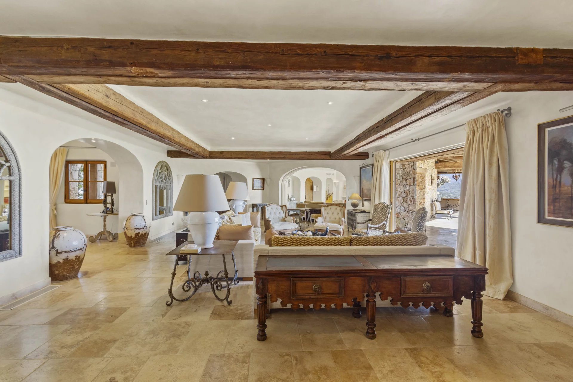 Majestueusement perché au-dessus de la Côte d'Azur, ce domaine extraordinaire offre une vue panoramique spectaculaire s'étendant de la mer Méditerranée aux montagnes ondulantes de l'Estérel. Situé au sein de 30 hectares de nature préservée à seulement 20 minutes de Cannes, cette propriété propose une combinaison inégalée d'authenticité et de luxe sophistiqué. La magnifique résidence principale en pierre, avec son élégance intemporelle et ses proportions gracieuses, a été méticuleusement conçue pour honorer les traditions architecturales provençales tout en intégrant le confort moderne. Poutres apparentes, murs en pierre naturelle et terrasses couvertes artistiquement conçues créent des transitions harmonieuses entre les espaces de vie intérieurs et extérieurs, tous orientés pour capturer le paysage à couper le souffle. Les équipements exceptionnels de la propriété comprennent trois piscines chauffées, dont un bassin à débordement qui semble fusionner avec l'horizon, un court de tennis professionnel, des installations de spa dédiées et une hélistation privée offrant des connexions rapides vers Monaco et Saint-Tropez. Au-delà de la villa principale, le domaine comprend trois villas d'invités indépendantes, une ferme traditionnelle, une résidence de régisseur et cinq appartements pour le personnel, assurant à la fois intimité pour les invités et service impeccable. Les intérieurs mêlent élégance traditionnelle et confort raffiné, avec de vastes espaces de vie, une cuisine haut de gamme et des espaces qui invitent à la détente. Cette offre rare représente le summum de l'art de vivre sur la Côte d'Azur, où le charme authentique provençal rencontre le luxe de classe mondiale dans un cadre d'une extraordinaire beauté naturelle et d'une intimité absolue.