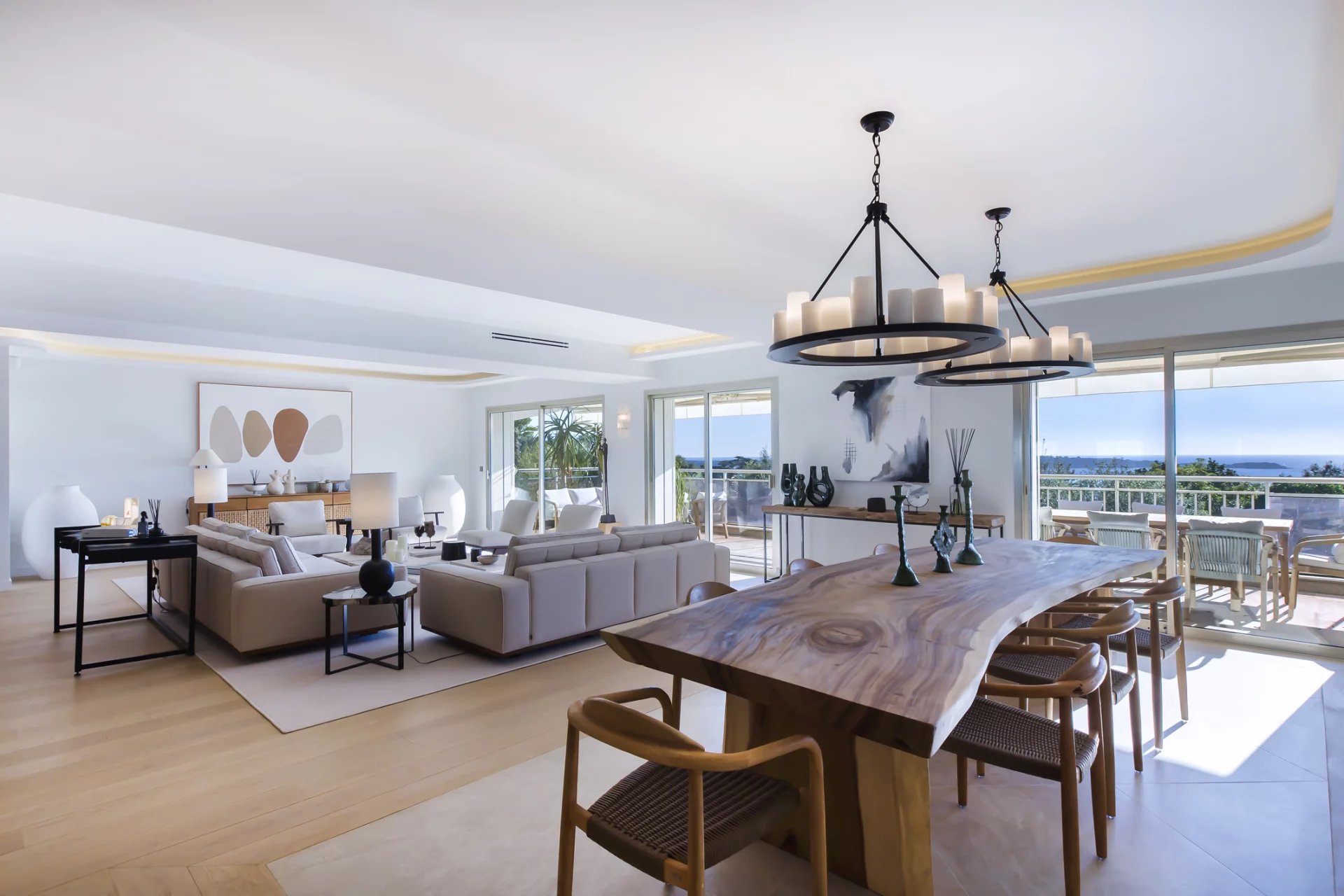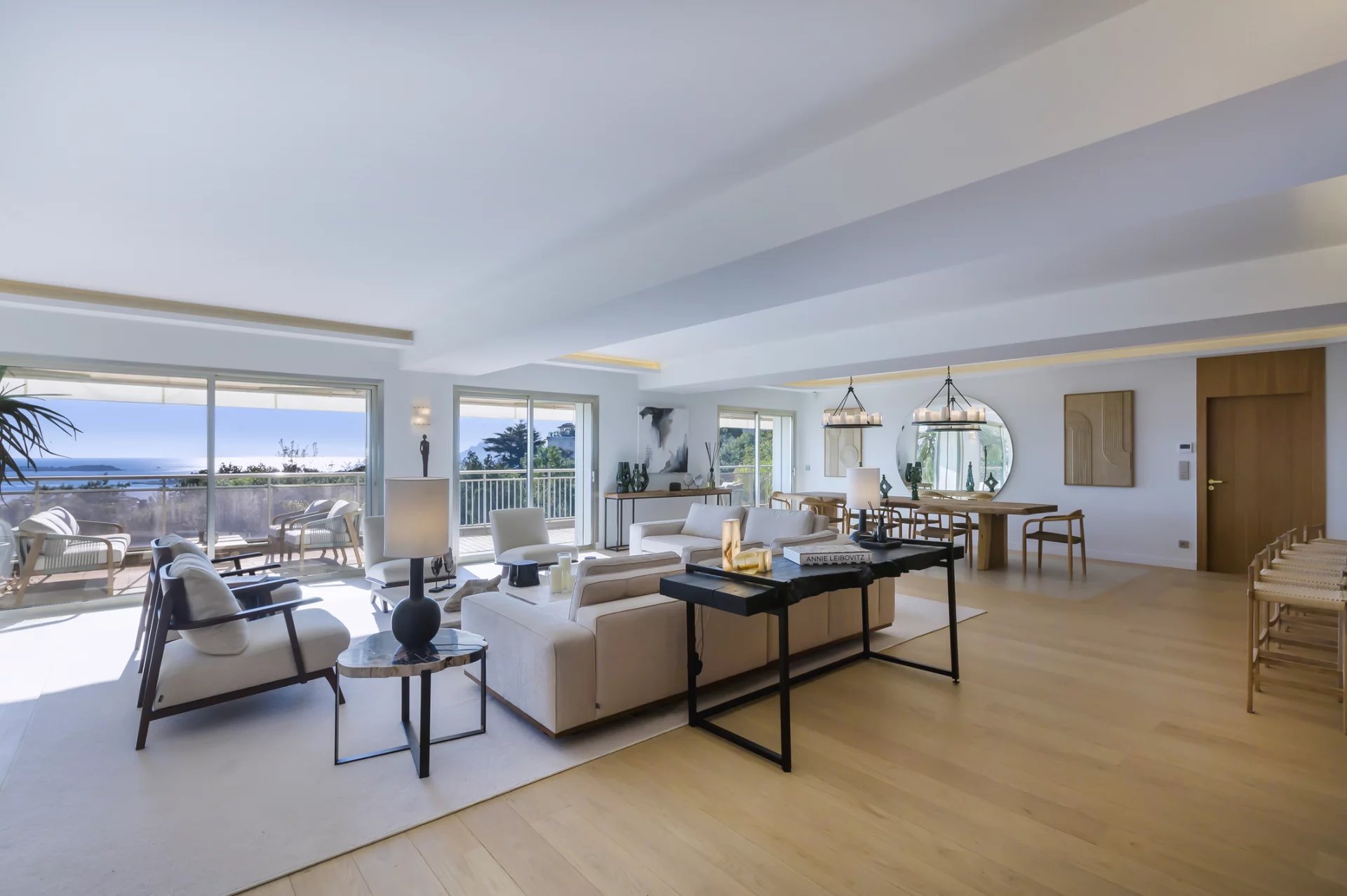 Élégamment positionnée au sein de la prestigieuse résidence Roi Albert, cette raffinée villa de 300 m² représente une rare opportunité d'acquisition dans l'un des quartiers les plus convoités de Cannes. La propriété occupe un cadre privilégié au sein d'un parc méditerranéen de 2 hectares méticuleusement entretenu, créant une atmosphère de réclusion tranquille. Le plan de la villa se déploie sur deux niveaux, avec l'étage principal dédié à des espaces de réception dévoilant des panoramas incroyables. L'agencement fluide comprend un généreux salon de réception, une élégante salle à manger et une cuisine ouverte de qualité, conçue tant pour la vie quotidienne que pour des réceptions. La suite principale occupe une position de choix, bénéficiant de la perspective élevée de la propriété avec des vues imprenables sur la Méditerranée. Trois chambres supplémentaires avec salles de bains attenantes au niveau jardin offrent des hébergements luxueux, complétés par un salon multimédia et un studio de fitness professionnel.Une cave à vin à température contrôlée et un double garage complètent cette distinguée offre de la Côte d'Azur. Les résidents jouissent d'un accès exclusif aux équipements exceptionnels du domaine, notamment une piscine de style resort et un court de tennis.