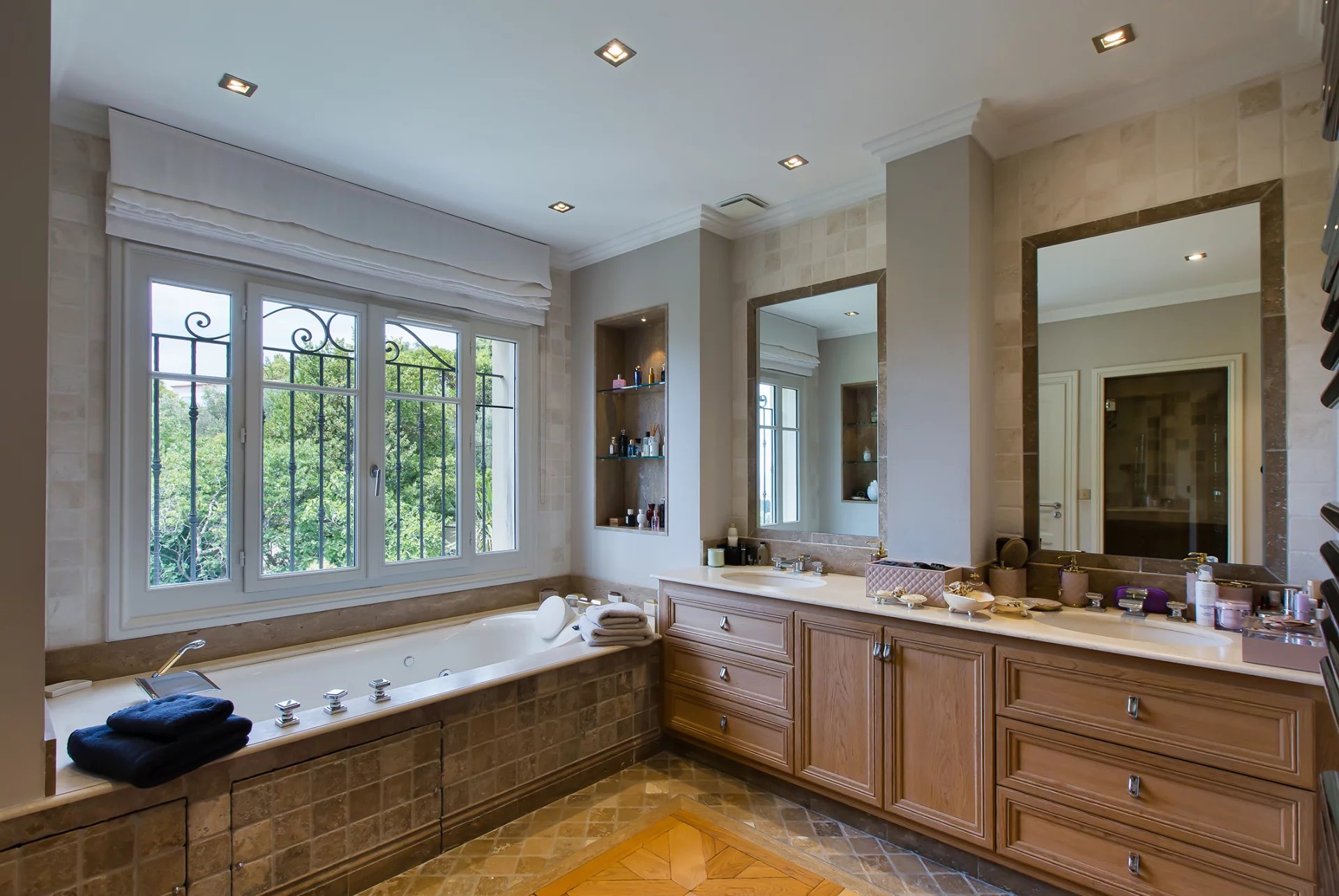 Nichée dans le prestigieux quartier de la Basse Californie à Cannes, cette élégante villa Belle Époque de 430m² domine une parcelle méticuleusement paysagée de 3 534m². La façade harmonieuse, avec ses fenêtres symétriques et ses balcons en fer forgé, incarne l'architecture méditerranéenne raffinée. La résidence comprend cinq chambres luxueusement aménagées complétées par six salles de bains, offrant à la fois intimité et grandeur. Un appartement indépendant offre un hébergement polyvalent pour les invités ou le personnel, tandis que les quartiers dédiés au gardien assurent une gestion discrète de la propriété. Les jardins expertement aménagés en terrasses mettent en valeur des cyprès matures, des haies sculpturales et une piscine de conception classique qui semble flotter au-dessus des pelouses soignées. Les équipements supplémentaires comprennent une salle de sport complète, la climatisation centrale, des cheminées traditionnelles, des systèmes d'irrigation automatisés et une vidéosurveillance de pointe. Cette propriété rarissime établit un équilibre exquis entre l'élégance architecturale historique et le confort contemporain, incarnant l'attrait intemporel de la vie sur la Riviera à quelques minutes de La Croisette.