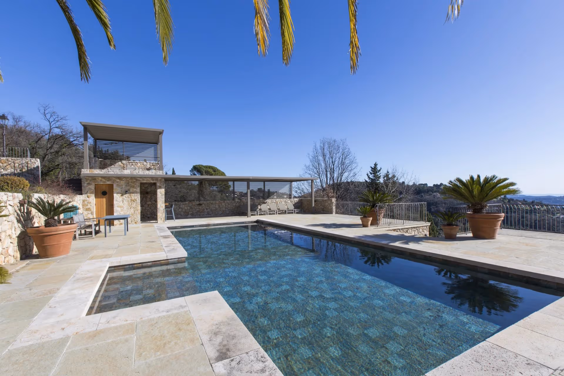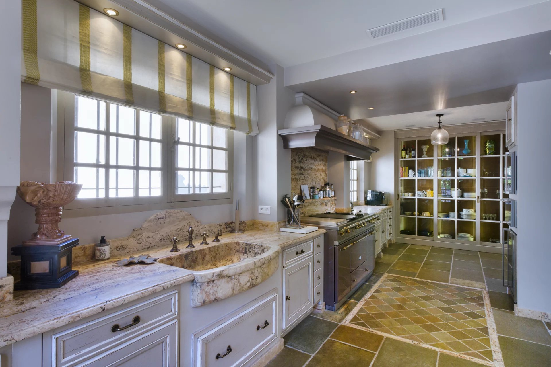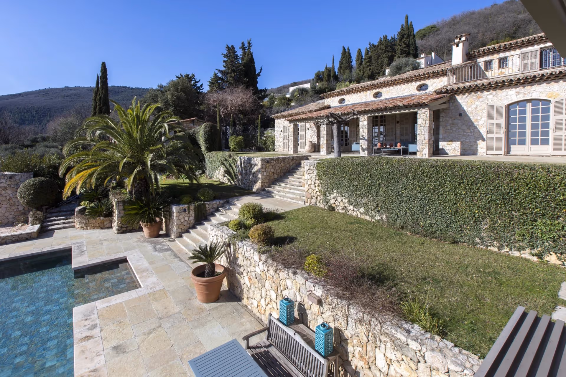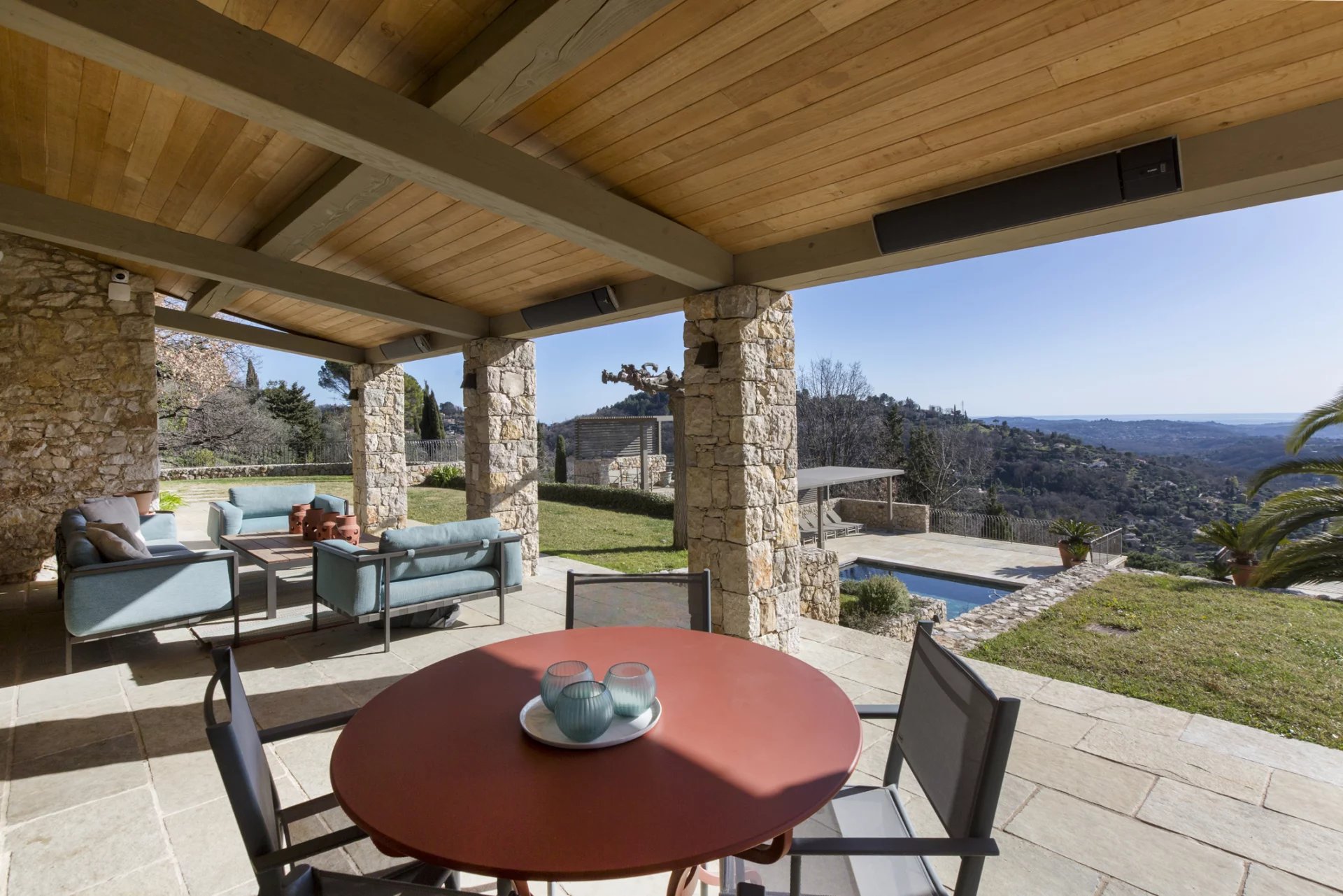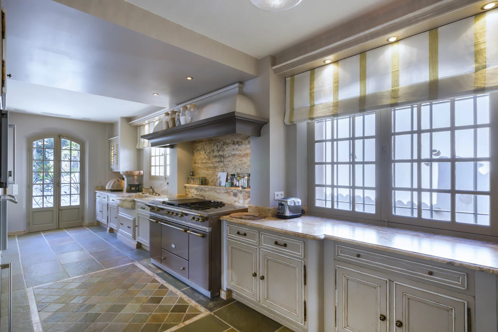 Cette belle bastide en pierre rénovée offre un niveau inégalé d'intimité et de tranquillité. Rénovée avec une attention impeccable aux détails et des matériaux luxueux, cette maison de designer offre un mélange de confort et d'élégance. Le rez-de-chaussée comprend un hall d'entrée menant à un salon spacieux et lumineux avec de hauts plafonds. Cette pièce s'ouvre directement sur une terrasse couverte chauffée, tandis qu'une élégante salle de télévision. 5 chambres avec salles de bains privatives pour les propriétaires ou les invités. Une maison d'invité,ndépendante offre une retraite privée avec une chambre, une salle d'eau et une charmante terrasse. L'espace piscine dispose d'une grande piscine d'eau salée chauffée, d'un jacuzzi, d'une douche extérieure et d'un pool house avec kitchenette et bar pour dîner et se divertir.